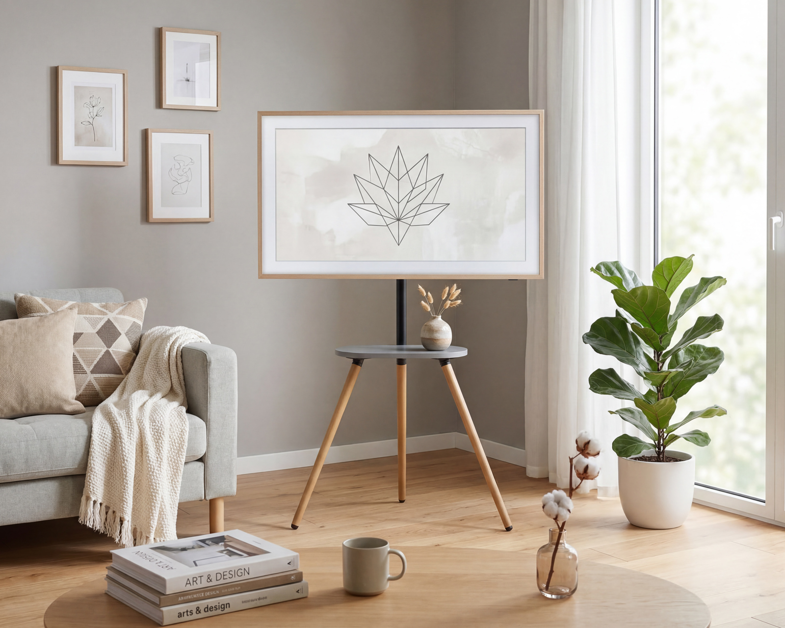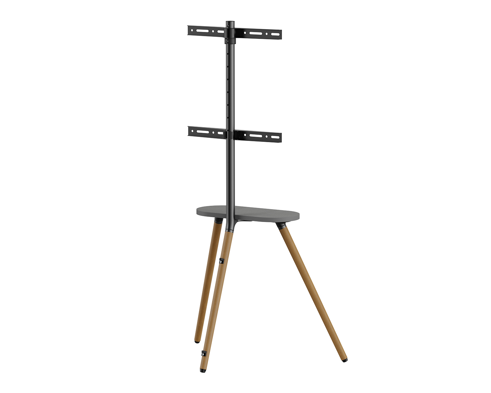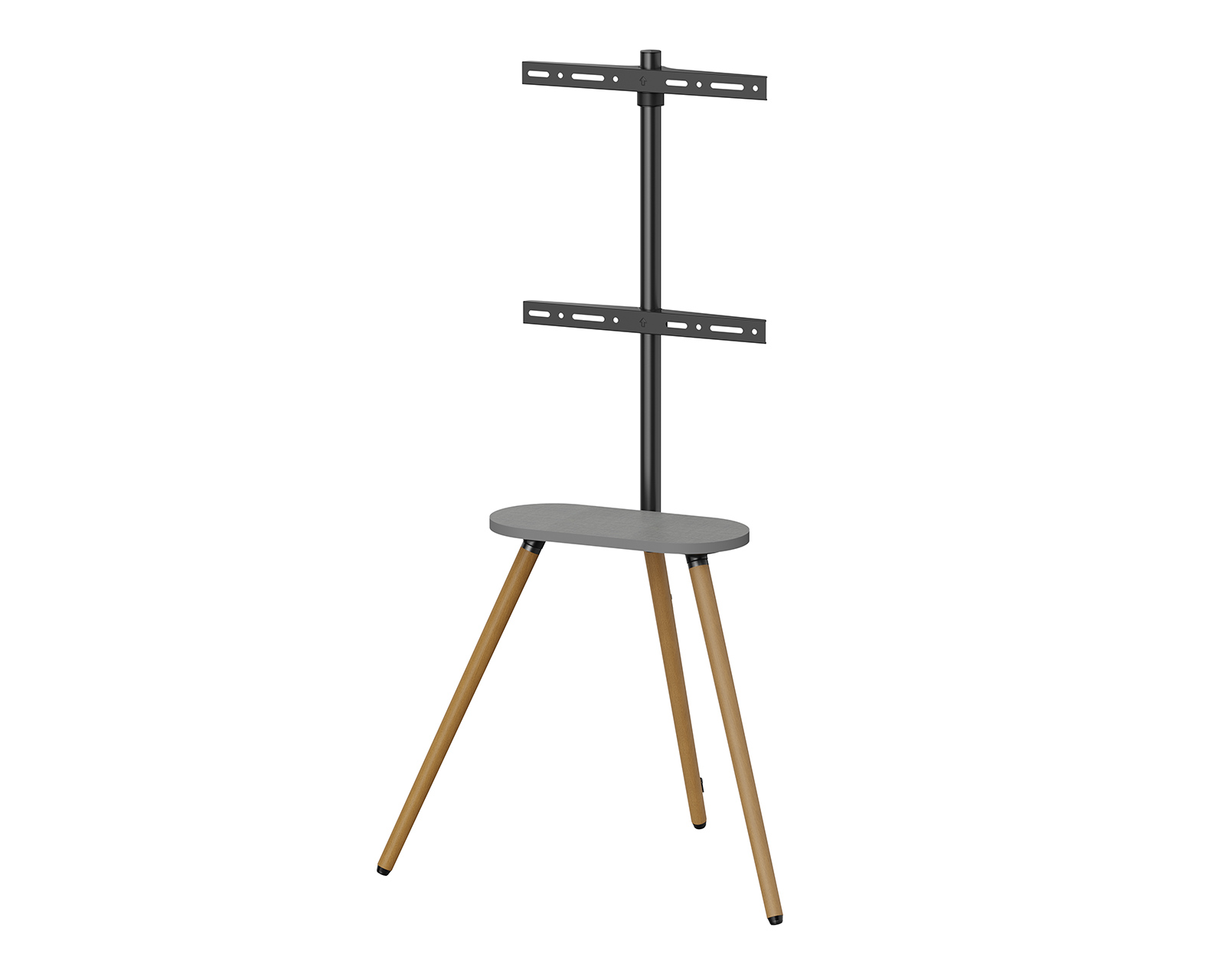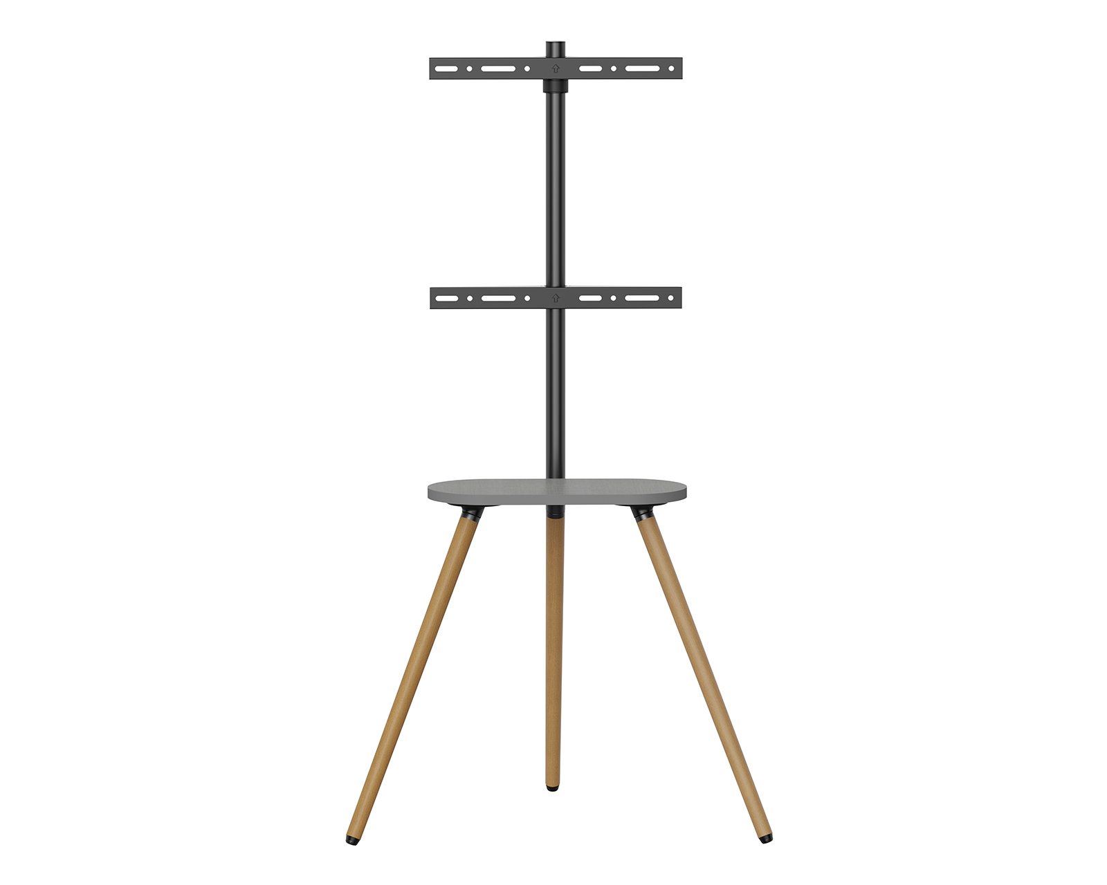 Tripod Stand from MaxMount combines style and functionality. It is designed to create a comfortable viewing experience, perfect for home theaters, offices, and exhibition centers. With a swiveling screen that moves between +45° and -45°, you can easily adjust the angle to suit your audience. The glossy melamine shelf sits directly beneath the TV and offers convenient storage for remote controls, portable speakers, and other small items.The stand is made from robust materials, including steel, aluminum, and melamine, providing a stable construction with a weight capacity of up to 35 kg. With a compact dimension of 735x508x1365 mm, it can accommodate screens between 43 and 65 inches, while being VESA-compatible for easy installation. The integrated cable management system keeps cables organized and out of the way, contributing to a neat and clean installation. Safety features included ensure that the stand does not tip over.