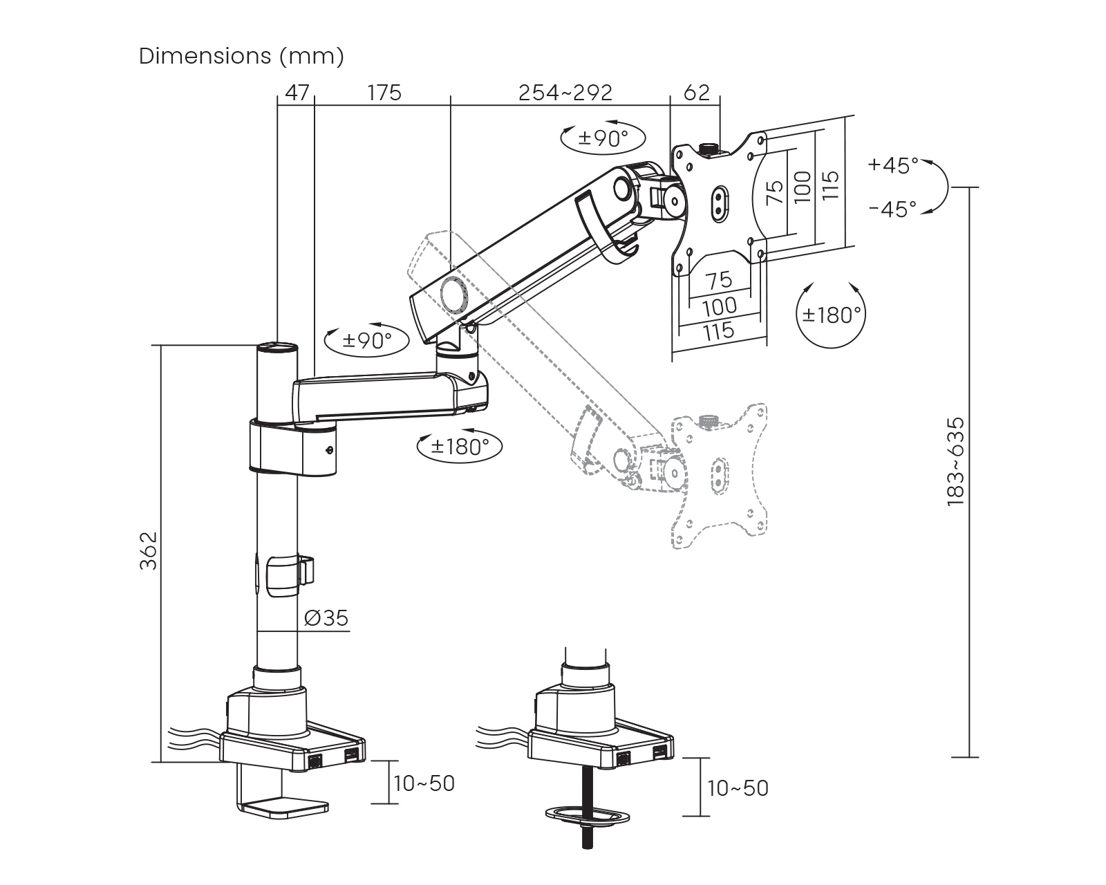 | Swivel Range | +90°~-90° |