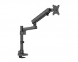 SLIM V2 with USB 3.0 Hub is a monitor stand from MaxMount that supports a display. It is designed with an extra slim and minimalist profile to free up desk space. The stand has been created with a cable management solution and includes two USB ports for connectivity. The target audience includes office users looking for an efficient and stylish mounting solution.The stand features a detachable VESA mount that allows for easy and quick screen installation, supporting both 75x75 mm and 100x100 mm mounting standards. It has a tilt angle of +45° to -45° and a swivel range of +90° to -90° for optimal viewing position. The materials consist of aluminum and steel, providing stability and durability. The monitor stand can support a maximum weight of 12 kg and is compatible with screens from 17 to 40 inches. The mounting method offers both clamp for desk edges and grommet mounting.