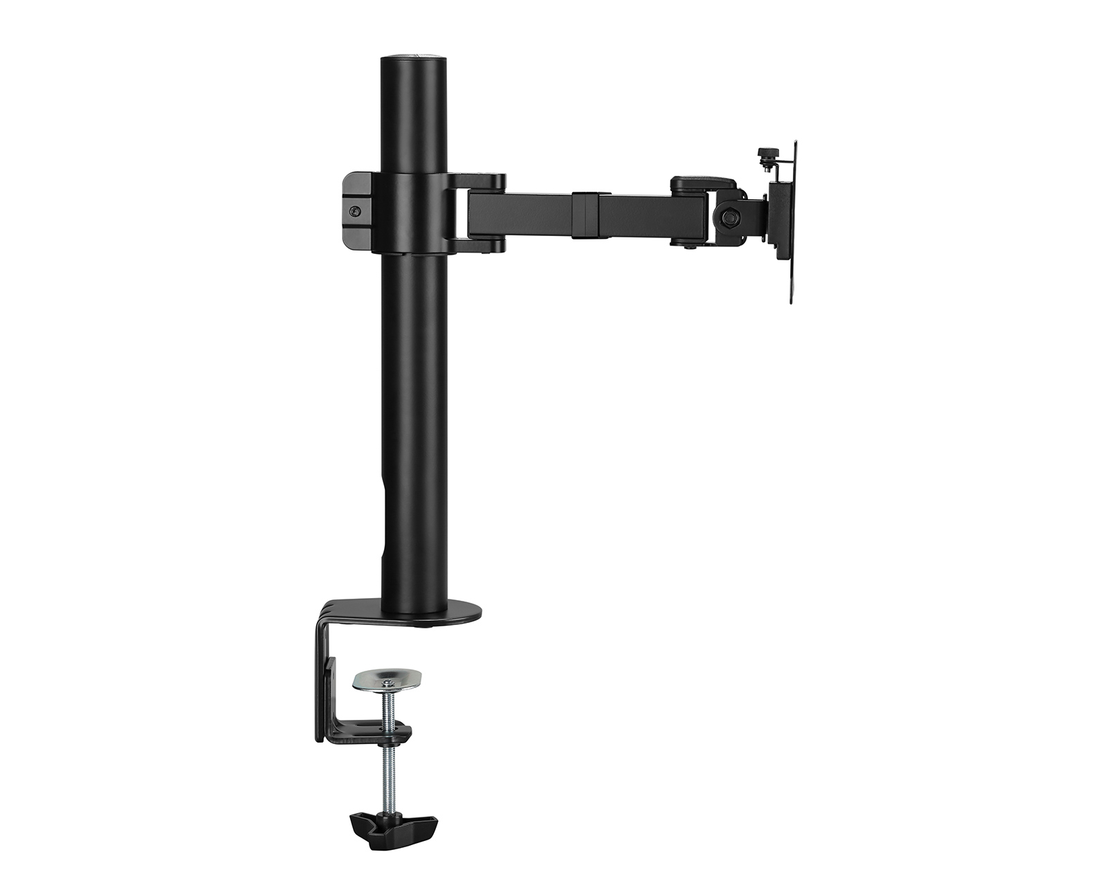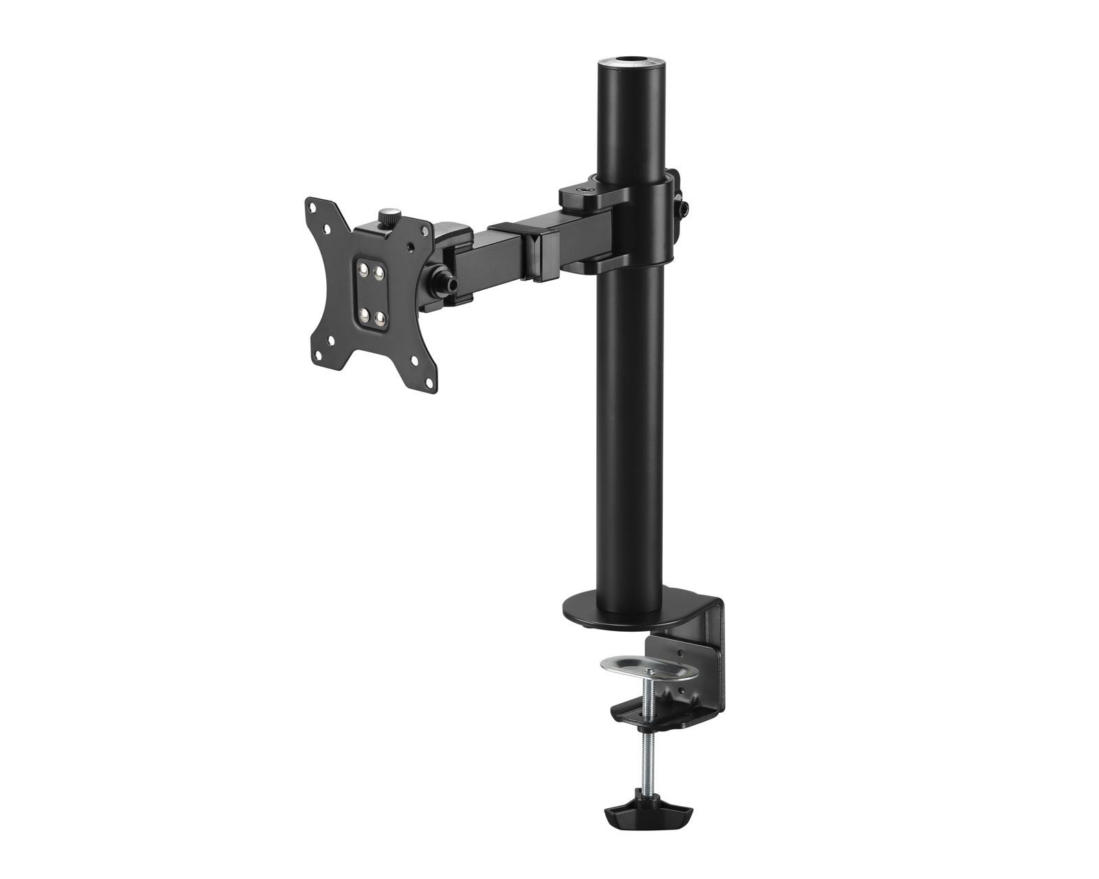The desk mount for computer screens from MaxMount is a monitor stand that combines efficiency and functionality. This product allows for an ergonomic placement of screens between 17 and 32 inches and has a maximum weight capacity of 9 kg. By using a clamp mount, it frees up desk space and provides extra flexibility in the workspace. The stand is made of steel, which provides a stable and durable construction.With cable management and adjustable features for tilt (+45° to -45°) and rotation (+180° to -180°), user-friendliness is enhanced. The swing motion structure has a swing range of +90° to -90°, allowing for smooth adjustment of the screen's position. The stand also has VESA mounts measuring 75x75 and 100x100, ensuring compatibility with most screens on the market. A 5-year warranty provides extra peace of mind for the user.