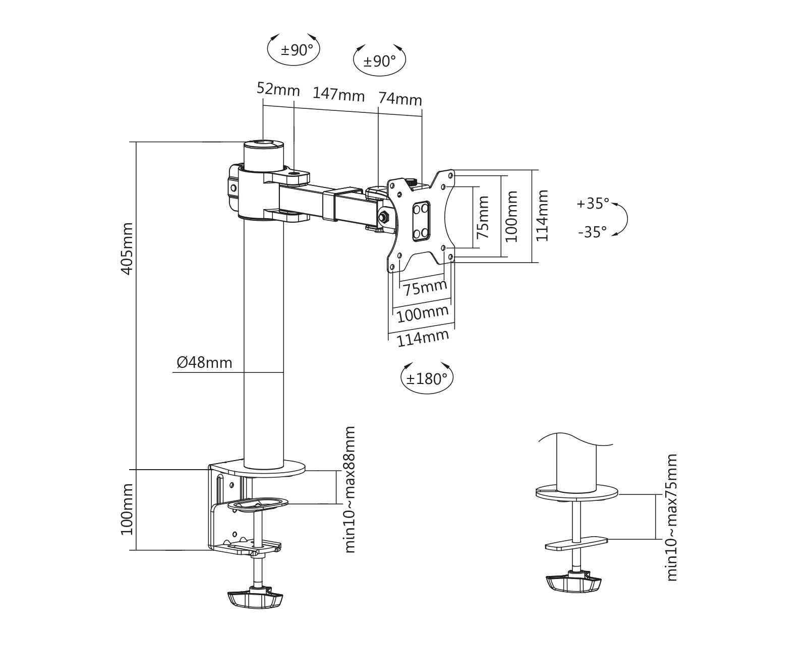 | Swivel Range | +90°~-90° |