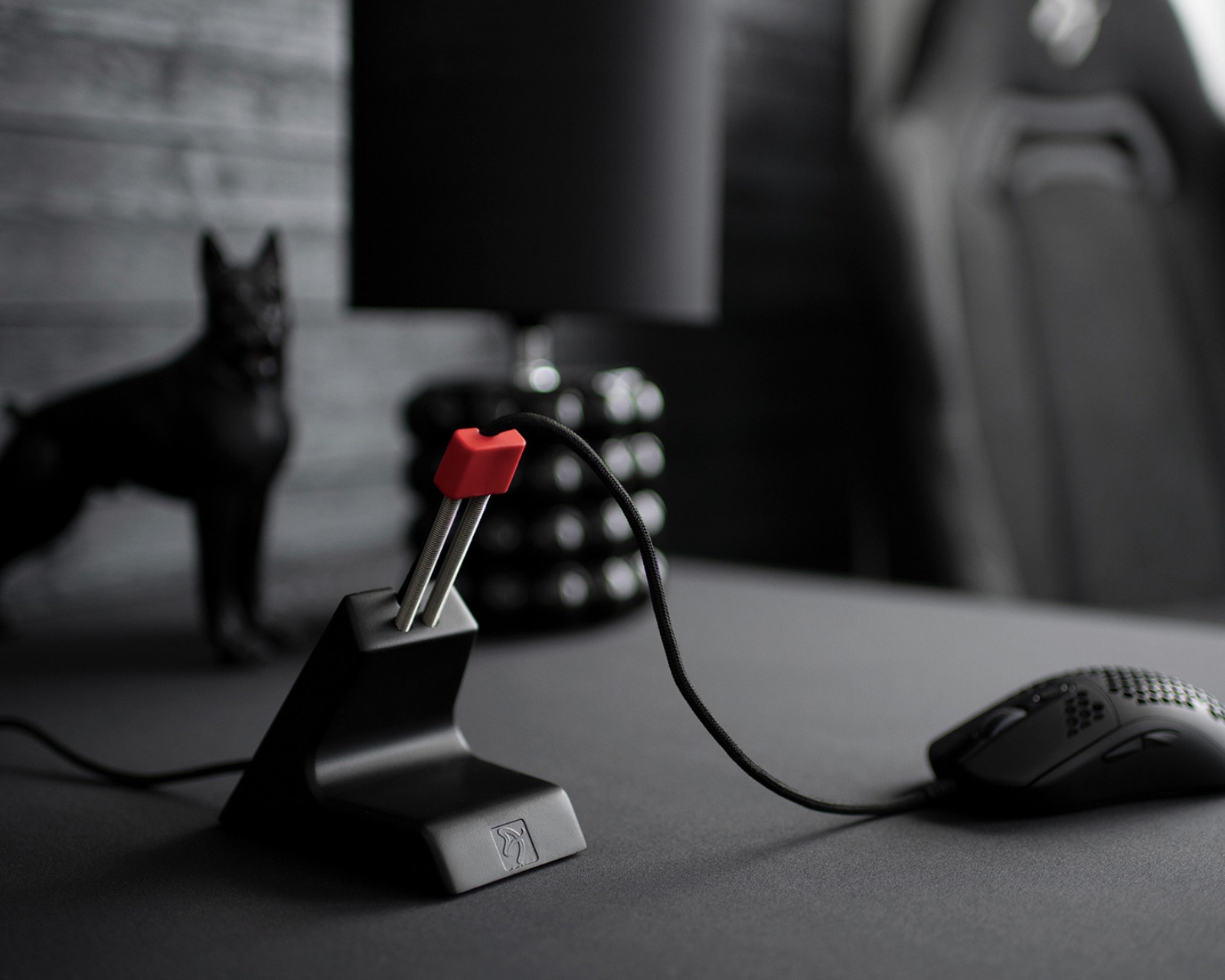 Ancora Mouse Cable Holder is a mouse bungee from Arozzi designed to provide gamers with a stable and organized workspace. This cable holder helps to prevent cable tangling, allowing for a smoother and more responsive gaming experience. The product offers a practical solution to keep cables in place and reduces resistance during movement. Ancora Mouse Cable Holder comes with a 2-year manufacturer warranty.The cable holder is made of high-quality materials that ensure durability and stability. The black color provides a discreet and modern aesthetic, making it suitable for most gaming computers and setups. It is easy to place and adjust, which means it can be customized to the gamer's needs. The cable holder can be used with different types of mice and has a design that ensures the cable is always held above the surface to prevent snagging.