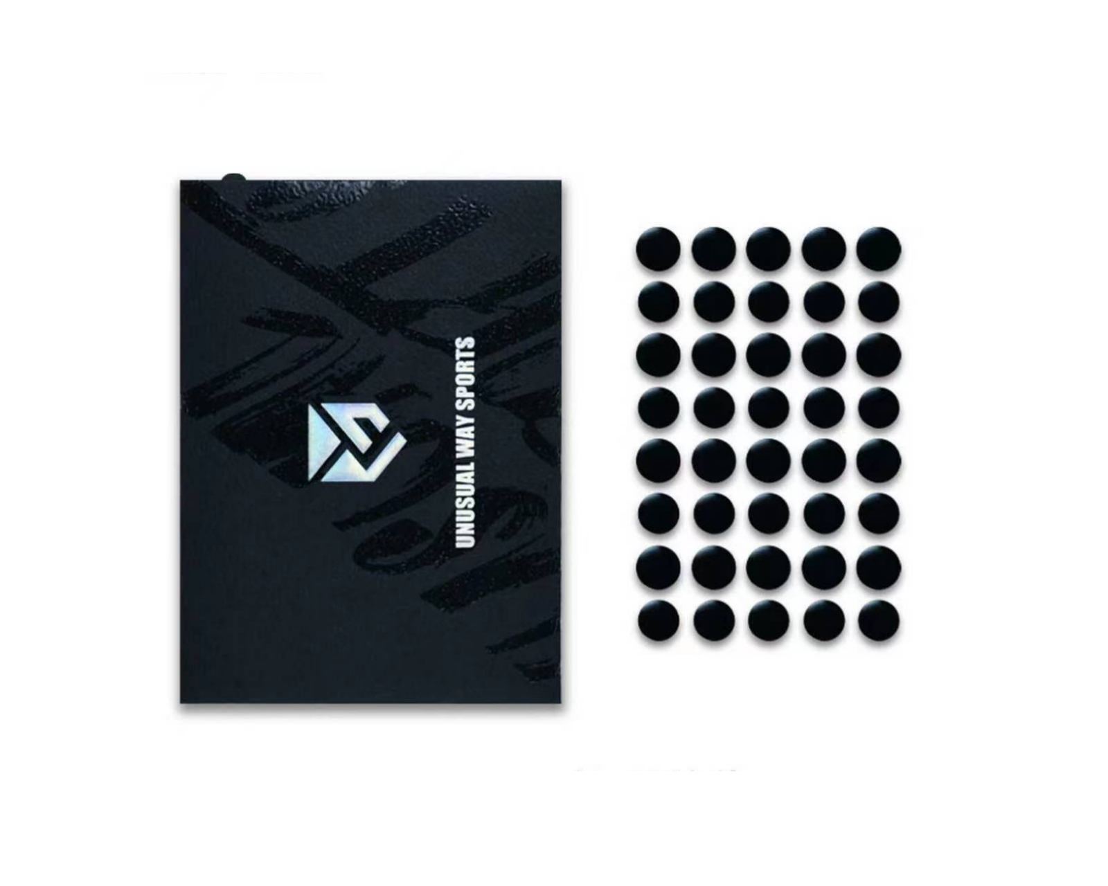 A set of universal dots skates from Unusual Way Sports, designed to improve the performance of your mouse. With a diameter of 10 mm and a thickness of 0.82 mm, these skates provide smooth and fast movement on all surfaces, allowing for more precise and controlled clicks during gaming and work. The material, 100% PTFE (Teflon), reduces friction and prevents the edges of the skates from wearing out too quickly.The product is equipped with 40 dots per package, providing the user with a long-lasting and durable solution for continuous use. It also includes a cleaning cloth to ensure that the skates remain in optimal condition. By combining quality and functionality, these skates are well suited for both gamers and professional users. The precision-engineered, curved edge further contributes to a smoother user experience, regardless of application.