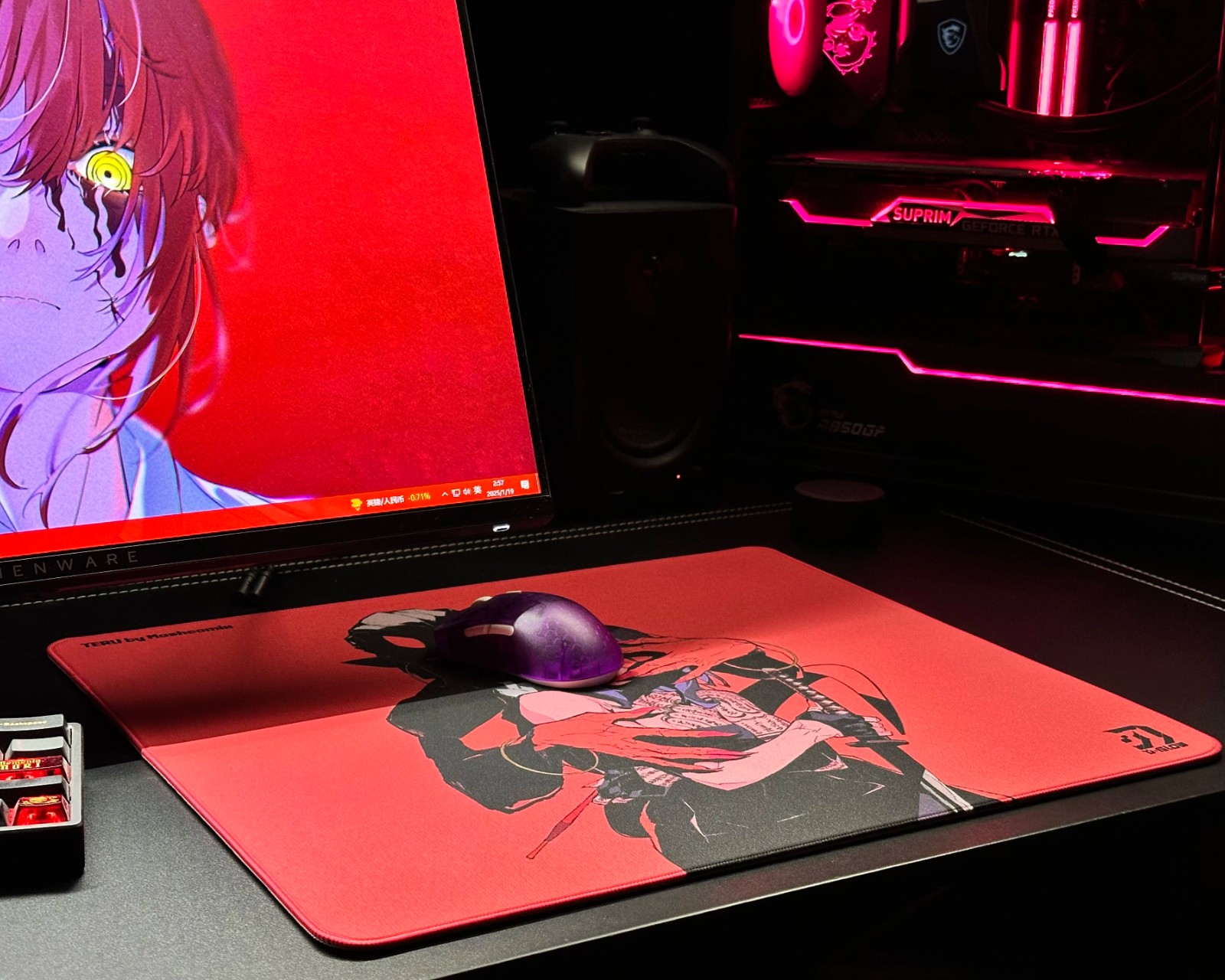 REN - Gaming Mouse Pad - TERU Edition - XL is a gaming mouse pad from D-Glow that offers optimal precision and control during your gameplay. With a size of 490 x 420 mm and a thickness of 4 mm, this mouse pad provides ample space for all types of playing styles. It is designed to provide a smooth and precise glide, allowing for quick movements and strong stopping power for increased accuracy.The mouse pad is made with a high-quality Poron-based rubber surface that is both sweat resistant and durable, ensuring it remains reliable even during long gaming sessions. The stitched edges prevent fraying and contribute to the pad's durability. The fine texture on the surface is optimized for gaming, enhancing speed and consistency. The non-slip underside keeps the mouse pad in place, no matter how intensely you play.