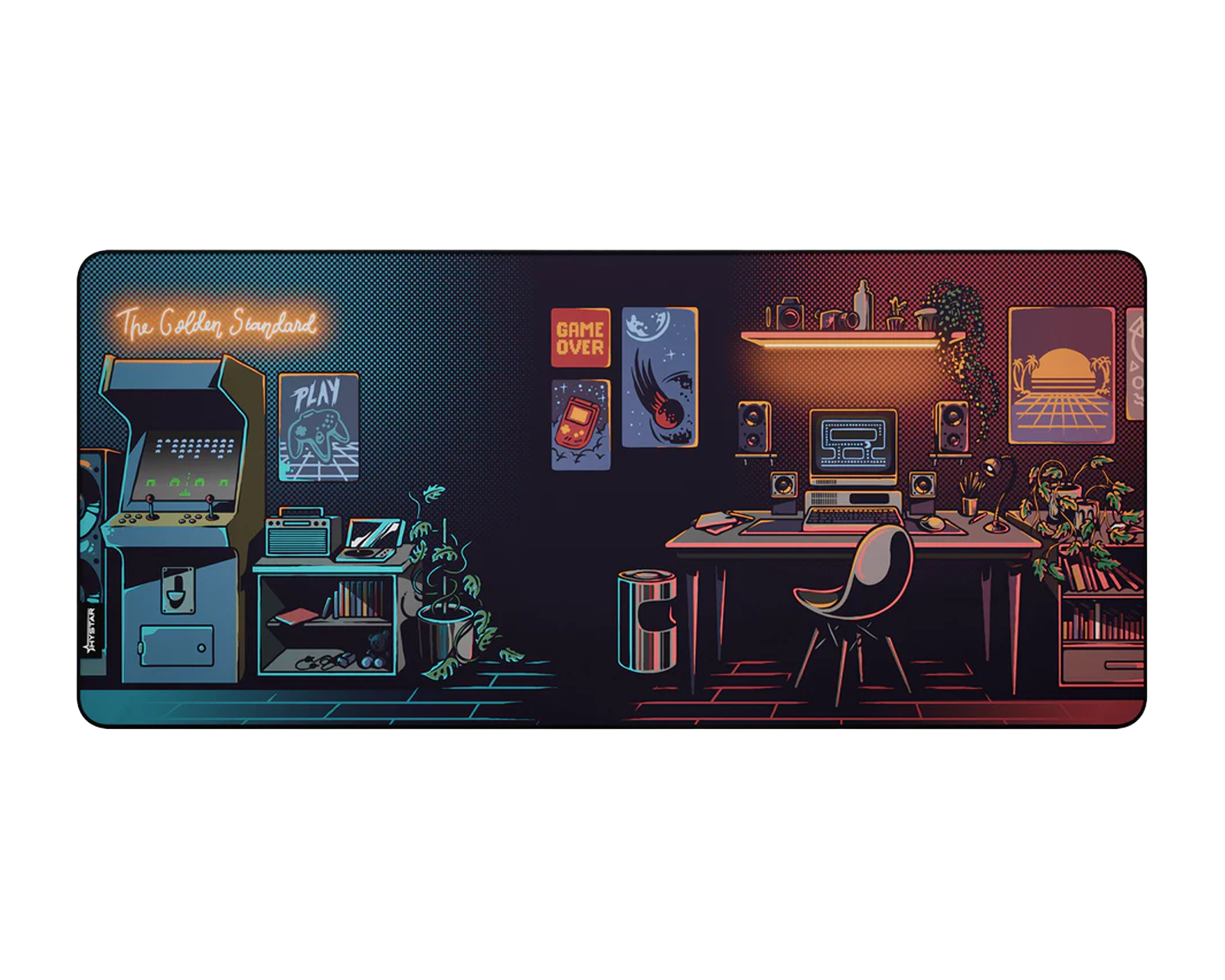 This XXL mouse pad from Hystar offers improved precision for gaming. With dimensions of 900mm x 400mm and a thickness of 5mm, it is designed for intensive use and provides a stable and comfortable experience. The mouse pad features a unique design that fits well in both gaming corners and offices.It is made of fine polyester, which provides a smooth surface for mouse movements. The water-repellent coating protects against spills and stains, ensuring long-lasting durability. The stitched edges increase durability and prevent fraying over time. A natural rubber base ensures that the mouse pad stays stable on various surfaces and minimizes sliding during use. The print technology with Never-Fade technology preserves the clarity of colors even with prolonged use.