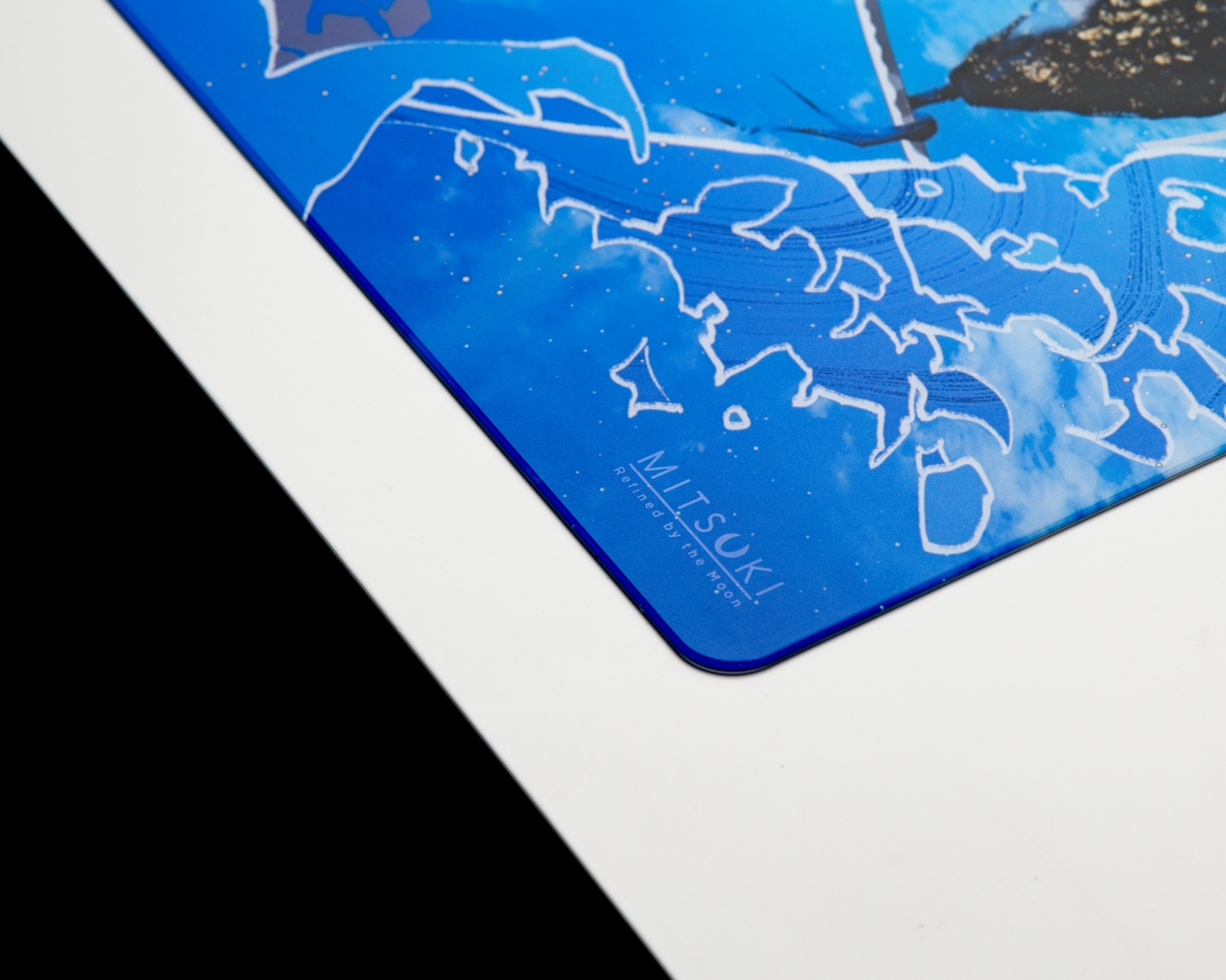 Yusui Glass Mousepad from MITSUKI, tailored for gamers who strive for precision and speed in their gameplay. With dimensions of 500 × 450 × 2.4 mm and a thickness of 1.5 mm, this mousepad offers an optimal space for movement and control. Its balanced surface is coated to ensure a smooth and fast glide across the surface, which is crucial for quick reactions in games.The construction of the mousepad is impressive with rounded edges that prevent chafing and a full silicone base that provides excellent grip against both the table and the surface it is placed on. This ensures that the mousepad stays in place no matter how intense the game gets. The design is inspired by artwork from local artist @agas0924 and has been developed in collaboration with local reviewer Phuyoon, adding a visual dimension beyond just the functional.