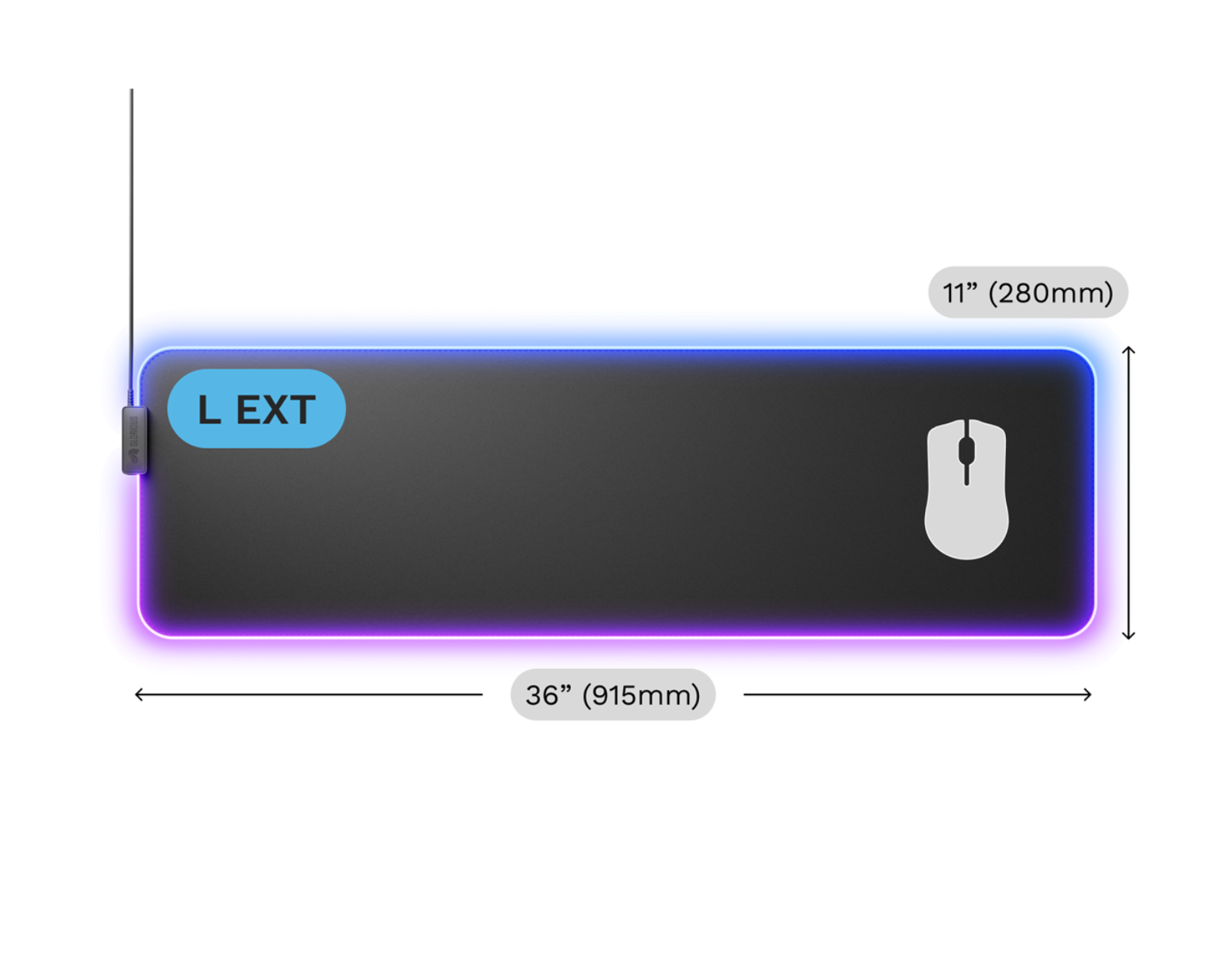 Mouse Mat 2 GLED Large Extended is a gaming mouse mat from Glorious. It is designed to provide a stable and responsive surface for gaming mice and is equipped with RGB lighting for visual customization. The dimensions are 915 x 280 mm and it has sewn edges to prevent repeated fringes. The target group includes gamers and users looking for a functional and aesthetic mouse mat. The surface of the mouse mat is made of a material that provides low friction for fast and precise mouse movement.The stitched edges contribute to increased durability and prevent wear and tear over time. The RGB lighting allows you to customize colors and effects to match other gaming equipment. The design also provides a stable base that prevents slipping during gameplay. With a thickness that contributes to comfort during long gaming sessions, it is suitable for both casual and professional gamers.