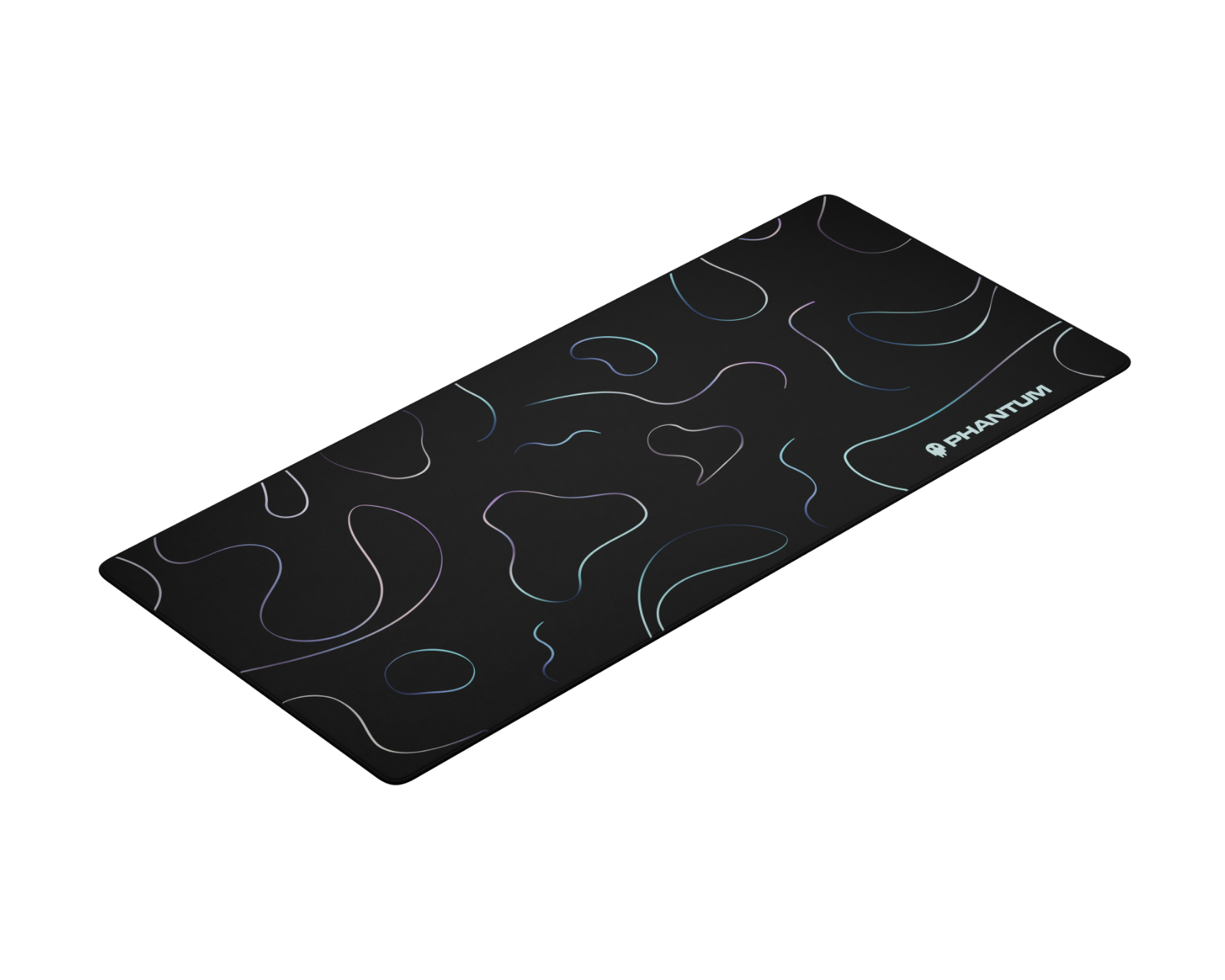 Nebula Gaming Mouse Pad XXL is a mouse pad from Phantum that is designed for gamers looking for a larger area for their gaming activities. With dimensions of 900 mm in width and 400 mm in depth, it provides ample space for both mouse and keyboard. The mouse pad is made of fabric and has stitched edges to enhance durability and prevent fraying.The material is carefully selected to allow precision in mouse movements as well as smooth and fast gliding. The black color offers a sleek and minimalist look, fitting well into most gaming environments. With a print on the surface, the pad is not only functional but also aesthetically pleasing. The construction ensures that the mouse pad stays in place during use, which is important for maintaining focus and control during intense gaming sessions.