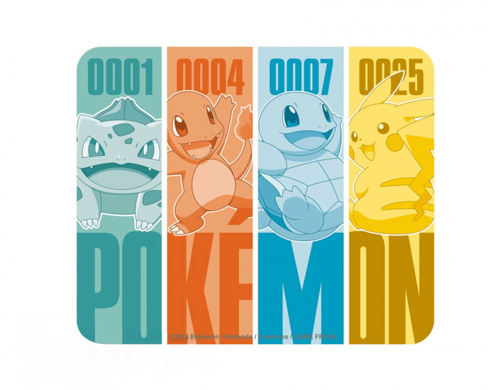 The Pokémon Mouse Pad is a mouse pad from Abysse that stands out with its motifs of Kanto starter heroes, including Bulbasaur, Charmander, Squirtle and Pikachu. The product is designed to enhance the working environment on your desk through its visual appeal and functionality. The mouse pad measures 23.5 x 19.5 cm and is 3 mm thick, making it compact and practical for daily use.Summary