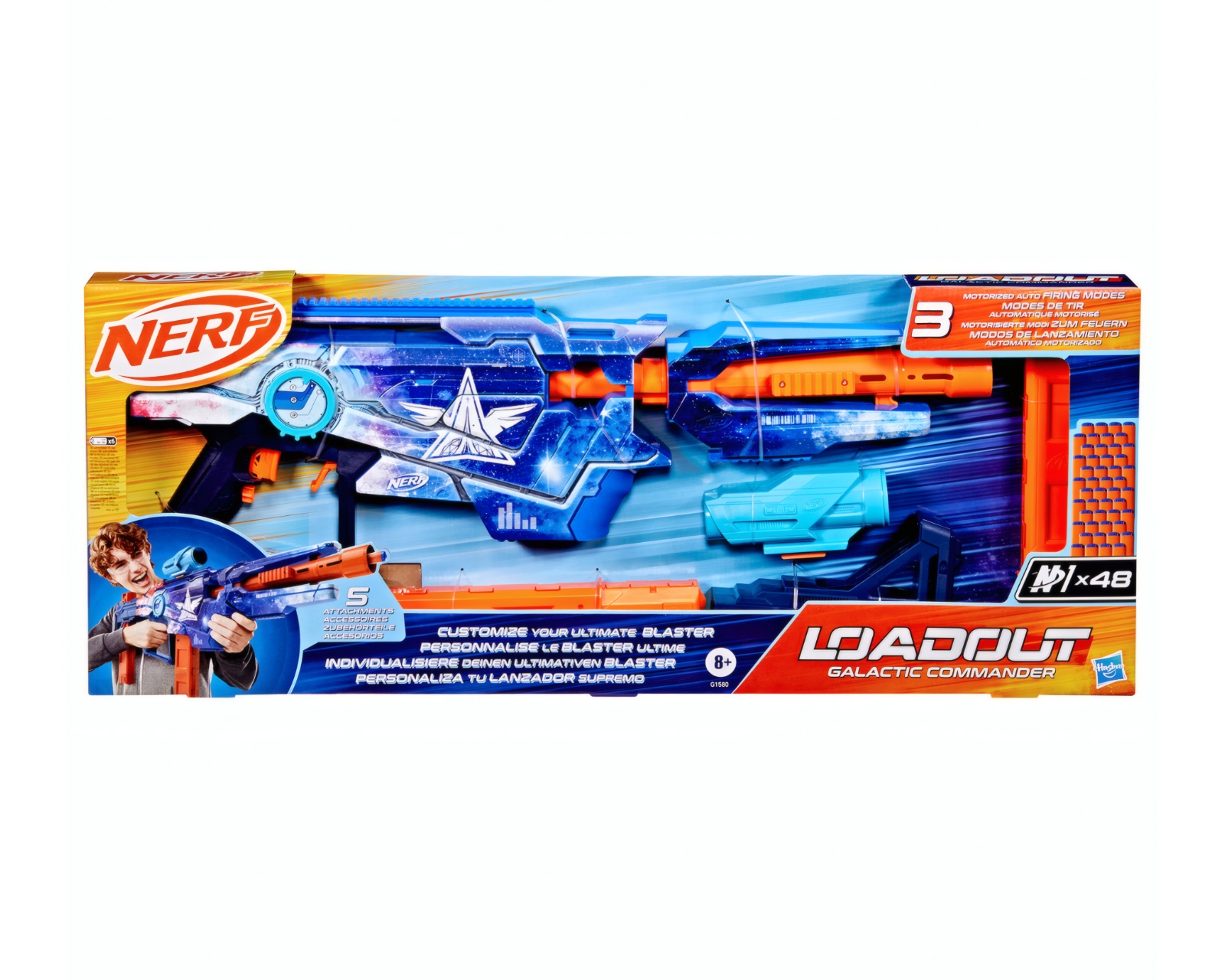 N-Series Blaster Equipment - Galactic Commander is a NERF blaster that offers customizability with over 1000 combinations. This blaster has three firing modes: semi-automatic, 3-dart burst, and fully automatic. It includes 48 N1 darts as well as a sight, stock, and barrel. The blaster is particularly suitable for gamers who want to emulate their favorite video games. The blaster is made with high-quality materials that ensure durability and long-lasting use. The interchangeable accessories allow the user to swap components to optimize performance.N1 darts are designed to provide maximum precision and speed, enhancing the user's gaming experience. The sight is constructed to provide good visibility under various conditions. Thanks to the design, the Galactic Commander blaster is compatible with other N1 dart blasters, increasing its versatility and usability.