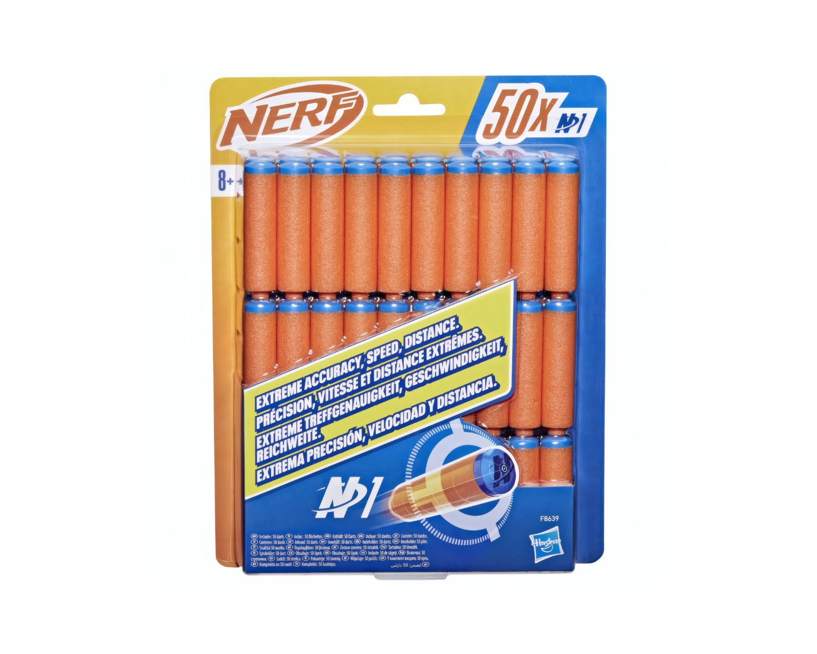 N-Series Dart Refill 50-pack is a set of dart arrows from Nerf that offers extreme precision, speed, and the ability to shoot at long distances. These official Nerf N1 foam darts are designed for both indoor and outdoor play, making them suitable for a varied gaming experience. The construction of the darts is specifically tailored to fit Nerf N Series blasters.The darts are made of foam, ensuring low weight and high safety during use. They are designed to provide optimized aerodynamics and stability in flight, contributing to increased accuracy. Additionally, the darts are compatible with all blasters in the Nerf N series, making them a practical choice for gamers looking to maximize their gameplay. It is recommended to use protective eyewear during gameplay for increased safety, although these are not included with purchase. Blasters are sold separately and are subject to availability.
