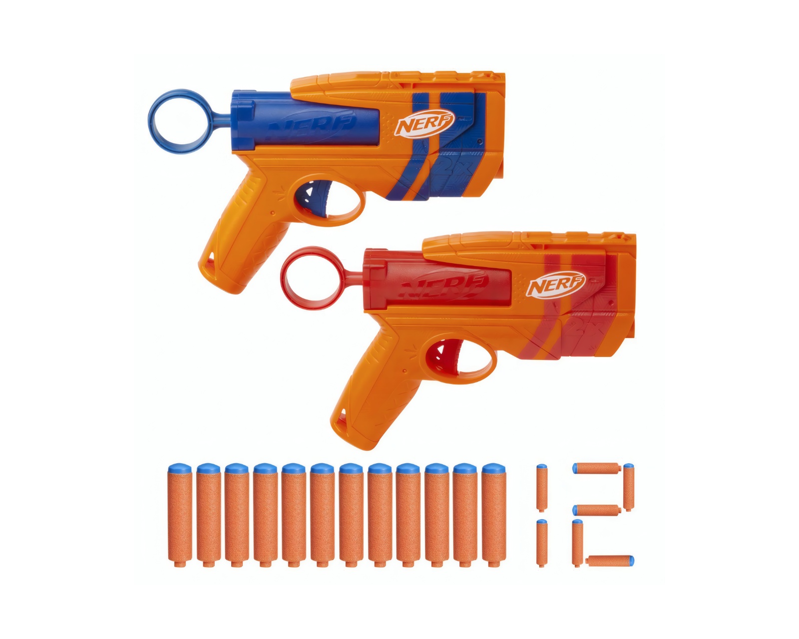 N-Series Duo Blaster is a double pack of dart blasters from Nerf, designed for both indoor and outdoor use. This package includes two compact blasters, each with a capacity of 2 dart darts and pull-back loading. With 12 Nerf N1 foam darts included, it is optimal for quick and efficient use during play.The blasters are made with a focus on durability and performance and are precise in their design to maximize distance and accuracy. They are specifically compatible with Nerf N1 darts, giving gamers the opportunity to effectively utilize the capacity of the accompanying ammunition. Each blaster has a tactical rail that allows for the integration of various accessories, further customizing battle strategy. Safety goggles are recommended, but not included in the package.