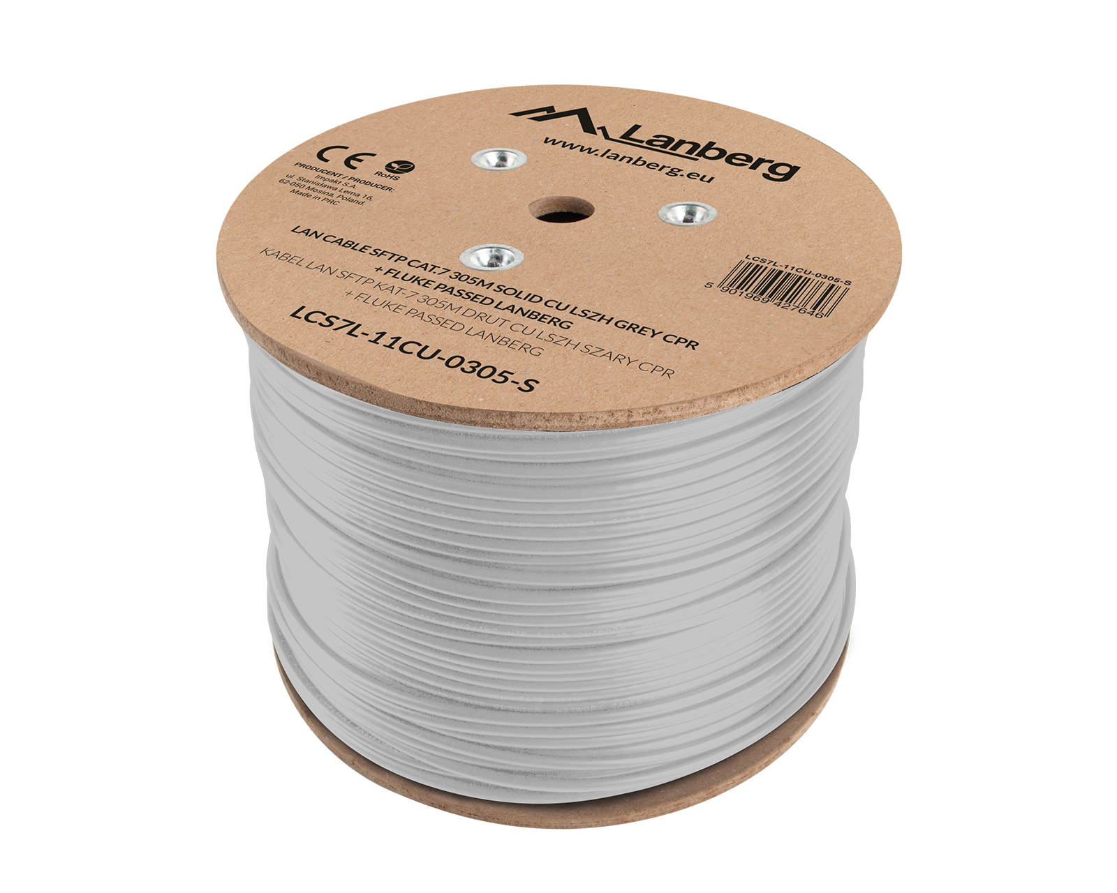 Lanberg bulk CAT7 network cable - 305 mShielded foiled twisted pair (SFTP) with solid, length indication, test fluke pass and HDPE conductor insulation.