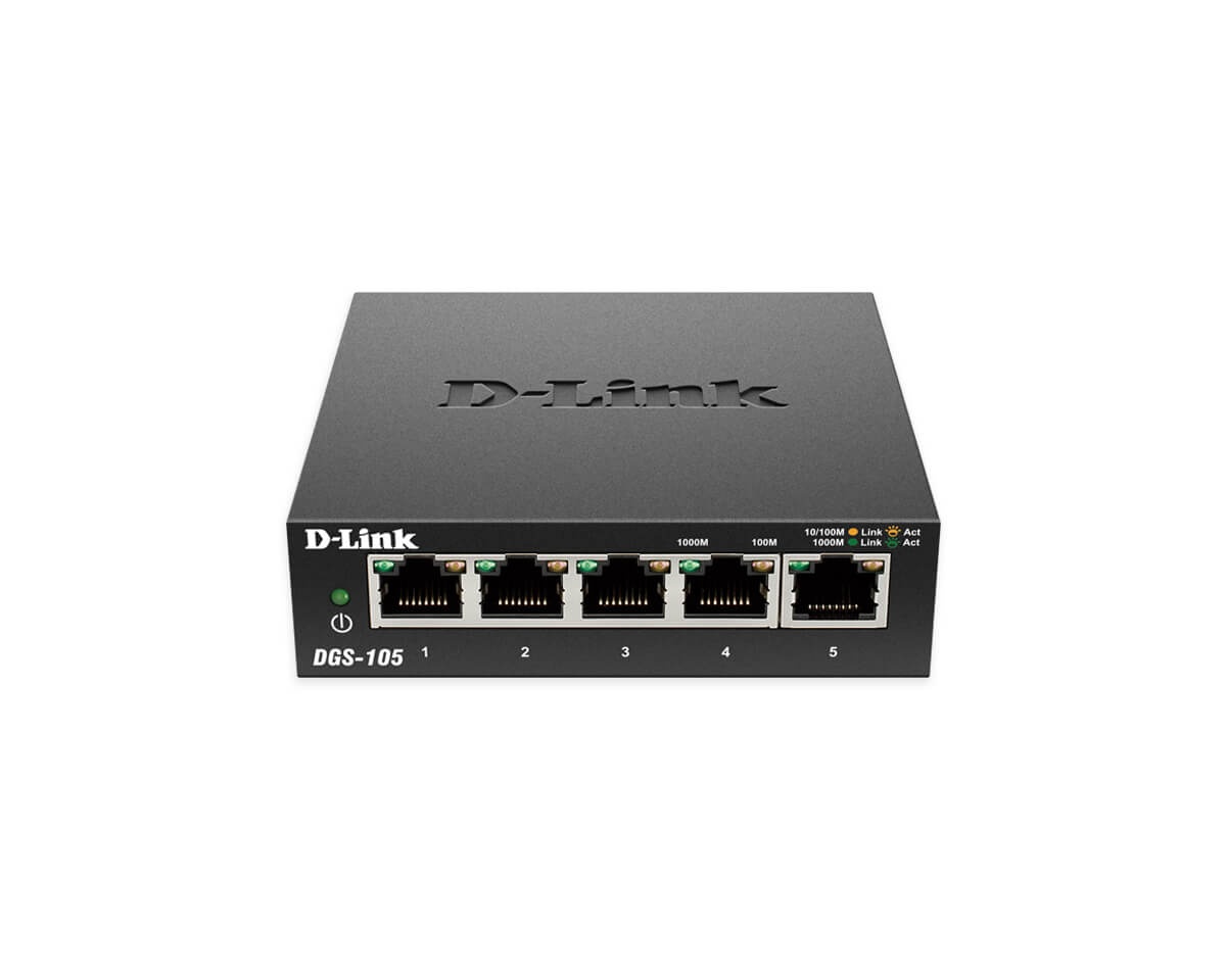 5-port 10/100/1000 Gigabit Metal Case Desktop Switch is a network switch from D-Link that offers high performance and long durability. It has five ports for Gigabit connections and is designed to handle tasks that require stable and fast transfer. With a speed of 16 Gbps and a buffer size of 128 kB, this switch is ideal for home offices and small businesses.The build quality is significant with a robust metal casing that protects the device from shocks and helps keep the internal components cool. The clear LED indicators make it easy to monitor the status and speed of each port, facilitating troubleshooting and management. The switch comes with a wall mounting kit for flexible installation and includes a Kensington lock for added security. It supports both 10/100 and 1000 Mbps speeds, allowing it to be adapted to various needs that may arise.
