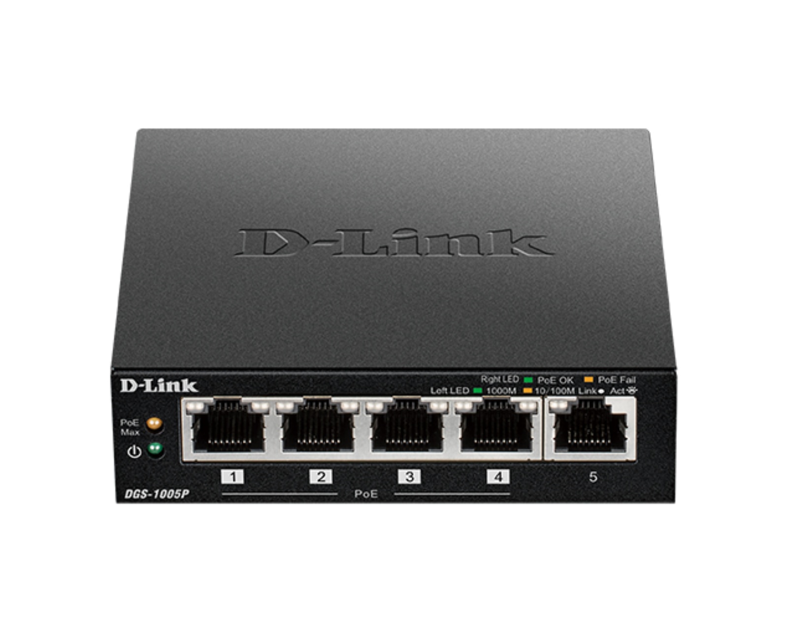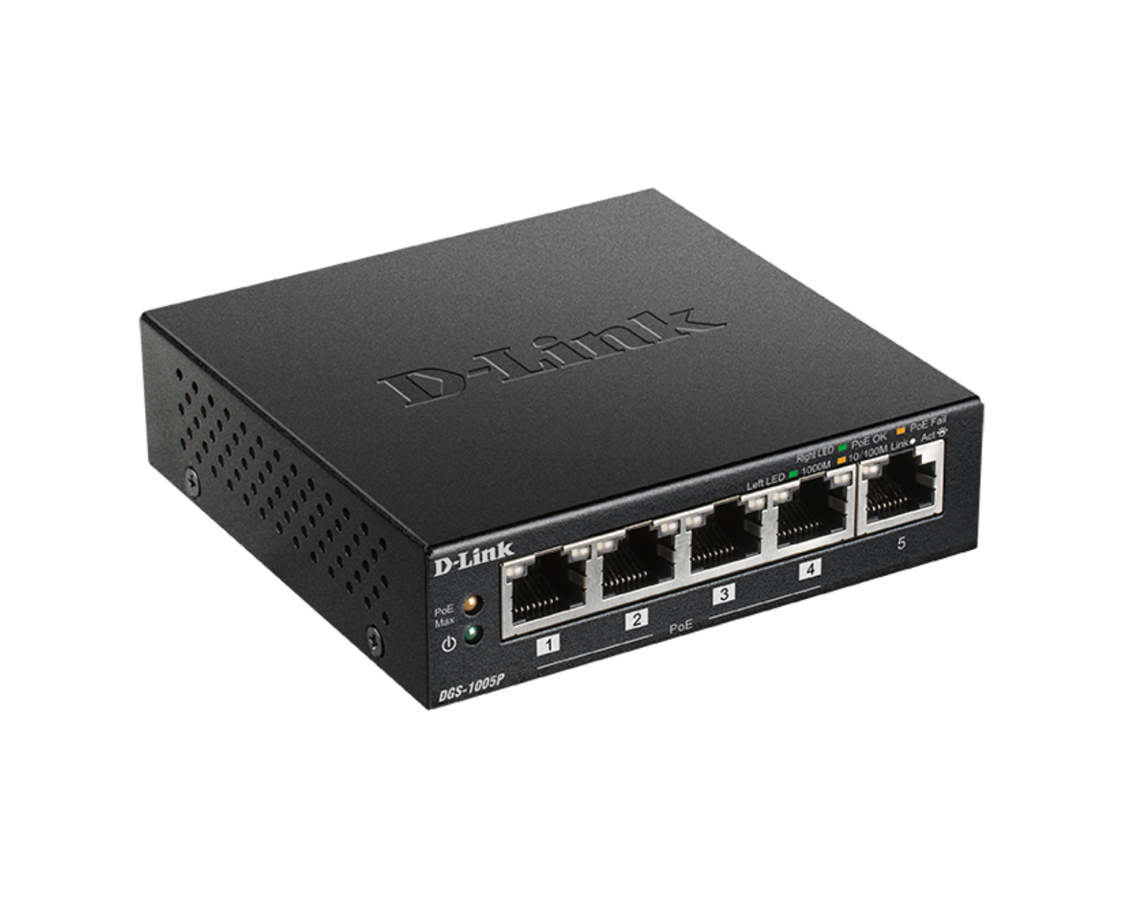 DGS-1005P is a 5-port desktop Gigabit PoE+ switch from D-Link. This device enables the connection of Power over Ethernet (PoE) devices such as wireless access points, network cameras, and IP phones. DGS-1005P has a total switching capacity of 10 Gbps and a PoE+ power budget of 60W, making it suitable for home and small businesses.DGS-1005P is equipped with five Gigabit Ethernet ports, four of which support IEEE 802.3af and 802.3at PoE, providing up to 30 W on each PoE port. The device requires no configuration and features plug-and-play capabilities for easy installation. The automatic MDI/MDI-X support eliminates the need for crossover cables, and the smart speed control on each port ensures compatibility with connected devices. With a fanless design, DGS-1005P operates quietly, making it suitable for noise-sensitive environments.