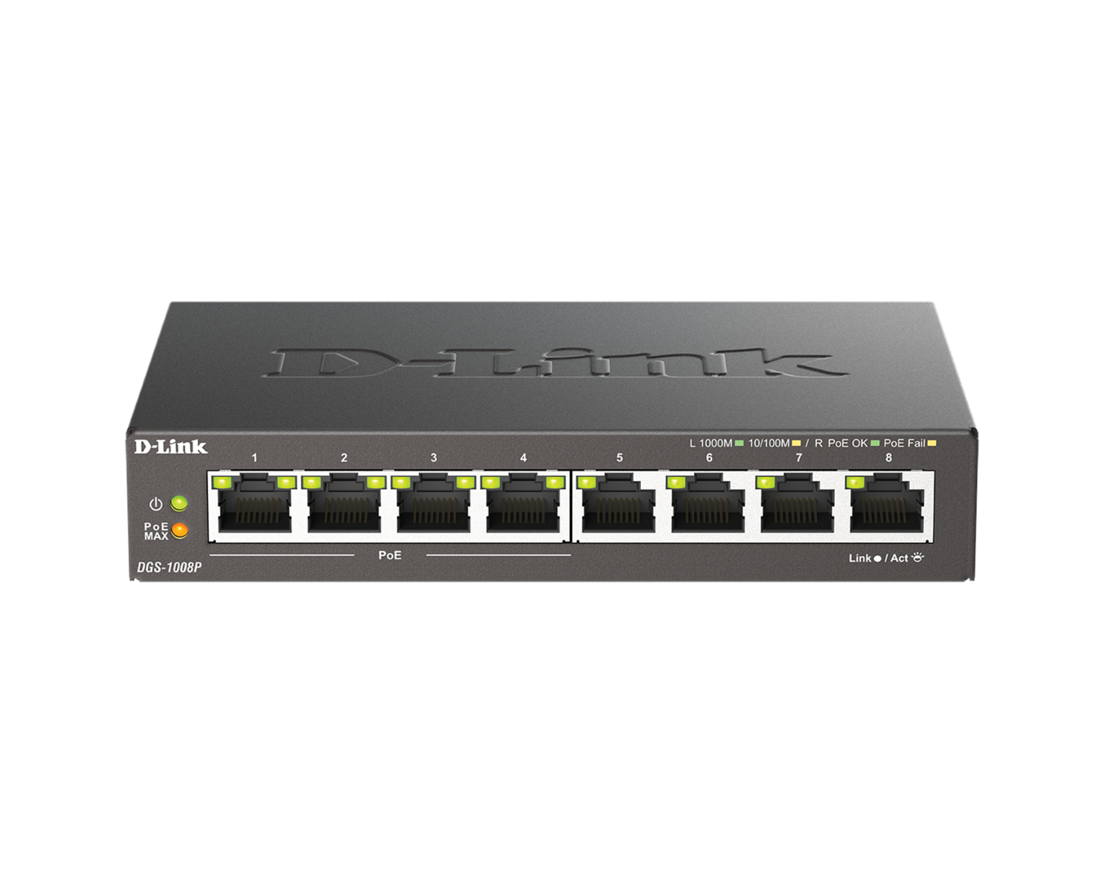 - 8-port switch with 4 PoE ports