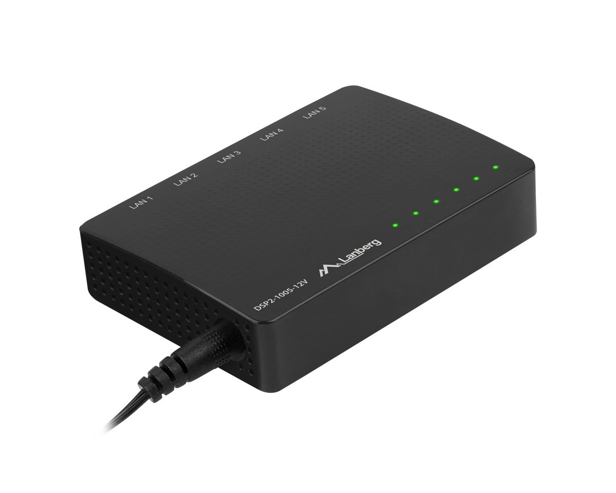 Lanberg Network Switch 5-port 100/1000 Mbps V12 is a compact and powerful solution for those looking for reliable network performance in a small and compact format. With five Gigabit Ethernet RJ-45 ports, this switch delivers fast and stable data transfer for both home and office. Plug-and-play technology makes installation simple and smooth, without the need for complicated configuration. Thanks to MDI-MDIX support, you don't have to worry about what type of Ethernet cable is used, saving both time and money.The unique 12V power supply offers high flexibility and is compatible with a range of security and IT devices that use the same voltage. This allows you to integrate power sources from alarm systems or CCTV solutions, minimizing the need for multiple power sources. Passive cooling keeps the unit quiet, perfect for environments where noise levels matter. The flow control function and support for both Half-Duplex and Full-Duplex ensure smooth handling of data flows, even under high load.