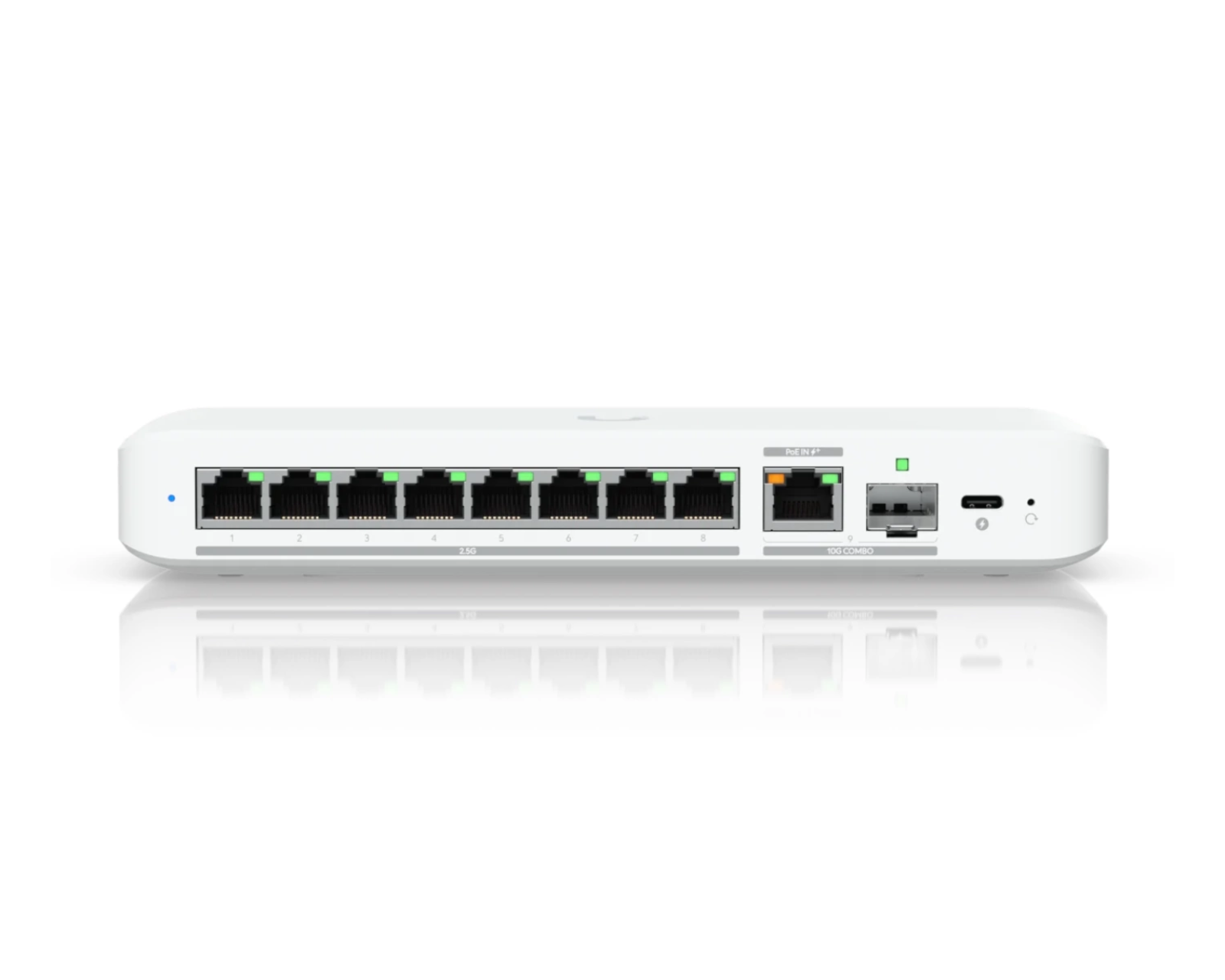 The UniFi Flex 2.5G Switch 8 Ports is a network switch from Ubiquiti that offers basic switching with support for 10G. It has a total of eight RJ-45 Ethernet ports and a switching capacity of 60 Gbit/s, making it suitable for use in small and medium-sized network environments. The device also supports Power over Ethernet (PoE) via USB.The switch's design means it can be placed on a desktop or mounted on a wall. It is equipped with a MAC address table that can handle up to 4000 entries, which simplifies network administration. The device is built with a focus on functionality and capacity, making it an effective option for users who need fast and reliable connectivity.