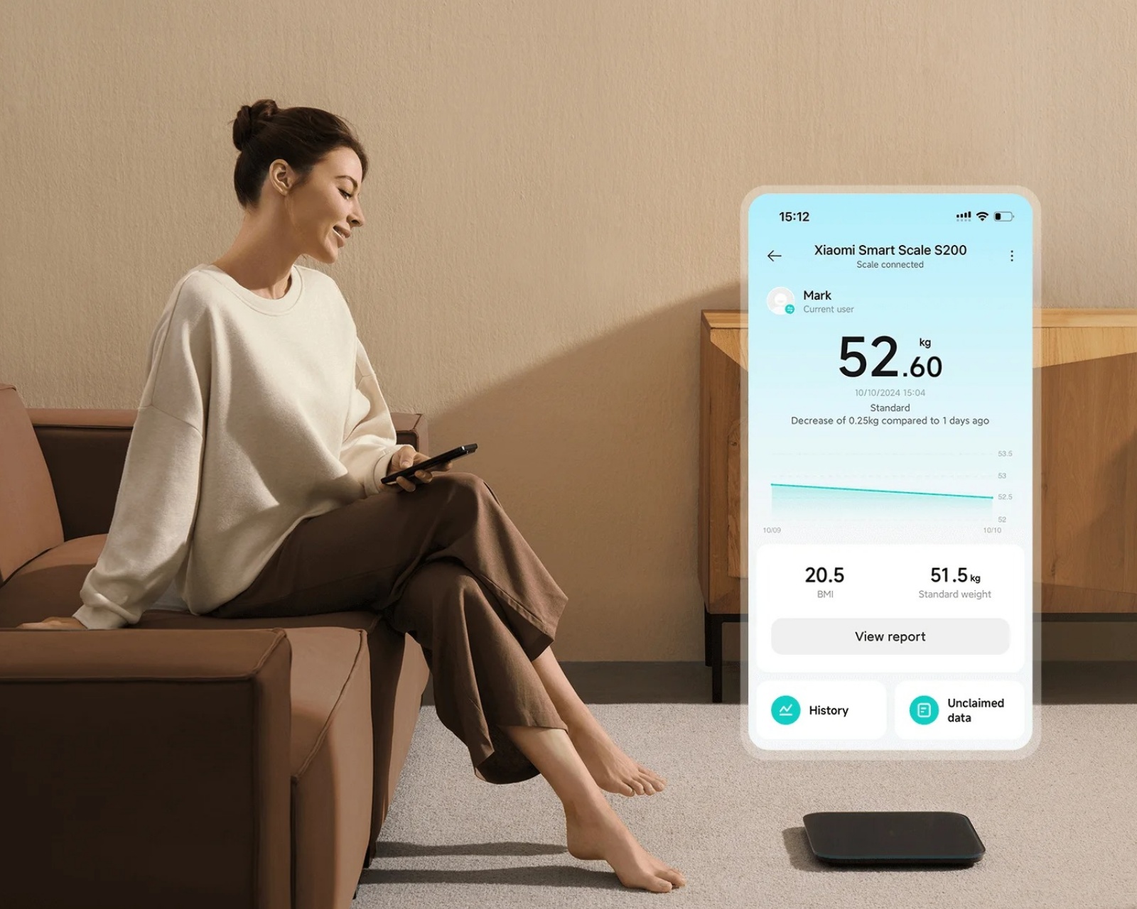 Xiaomi Smart Scale S200 is a smart scale from Xiaomi that offers versatile and accurate measurements of weight and body metrics. It is equipped with a high-precision sensor that has minimal weight reductions of 0.05 kg and can measure weights up to 150 kg. The product is designed for users who want to monitor their health and weight, and it can be connected to the Xiaomi Home app to store information for up to 36 users.This scale is constructed with an E-shaped manganese steel sensor which ensures an exact measurement of every weight difference. After activation, it can automatically switch between measuring people or objects, depending on the weight. It can also register the weight of small objects, and there are specific modes for weighing infants. Smart features include real-time calculation of BMI and ideal weight based on the user's data.