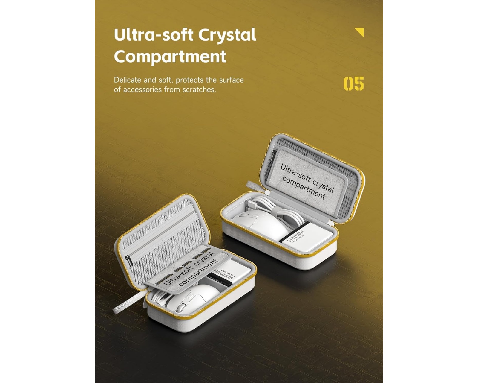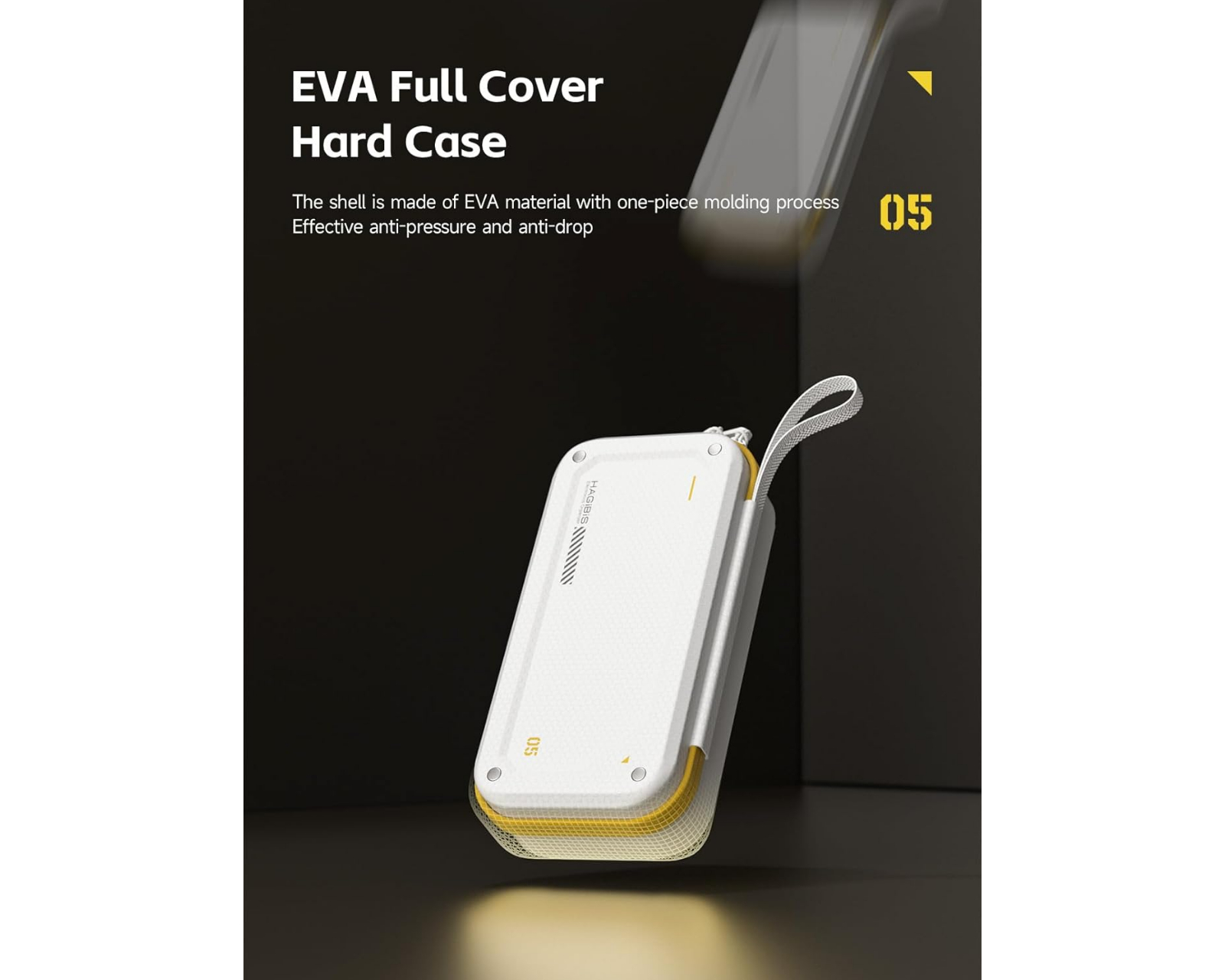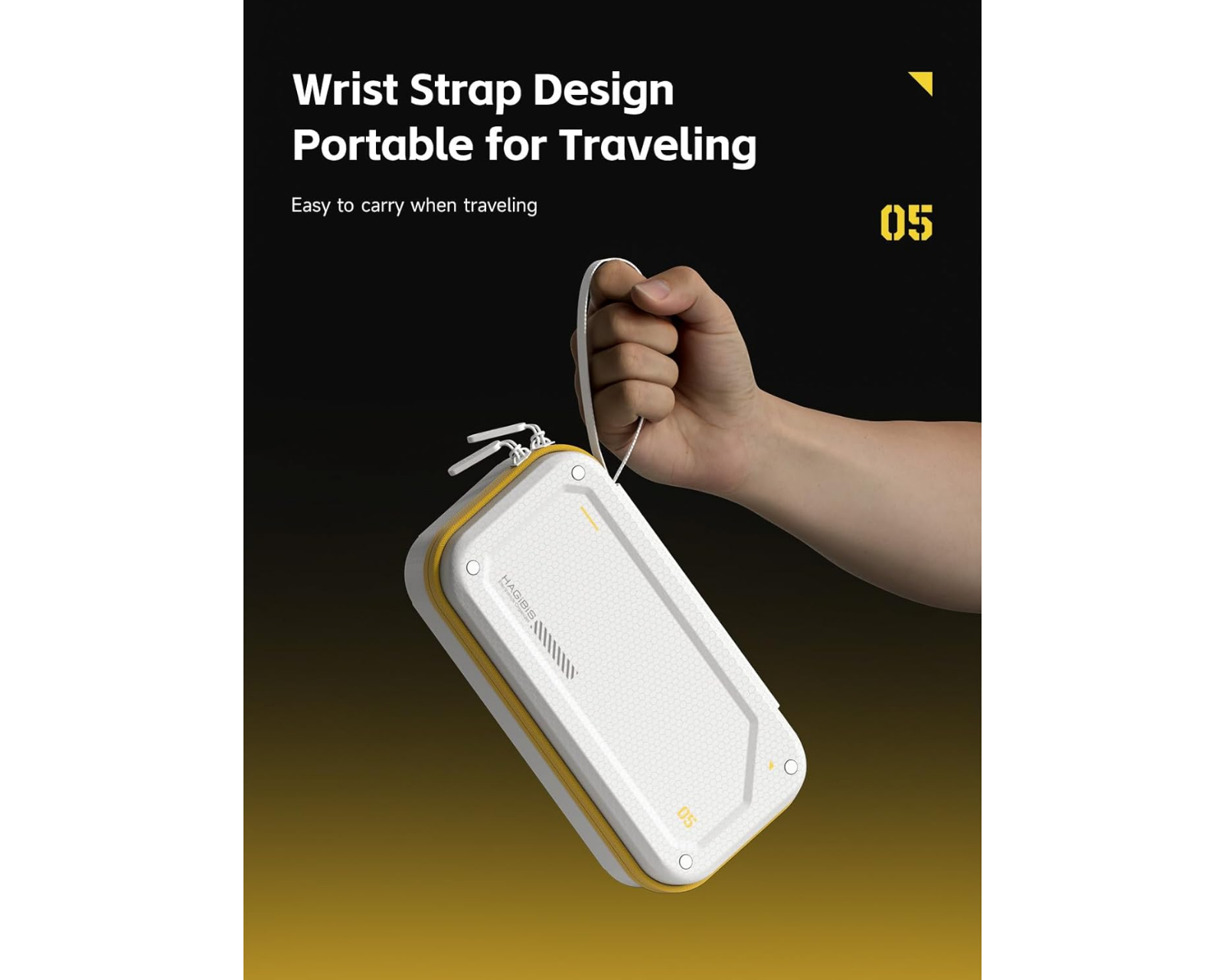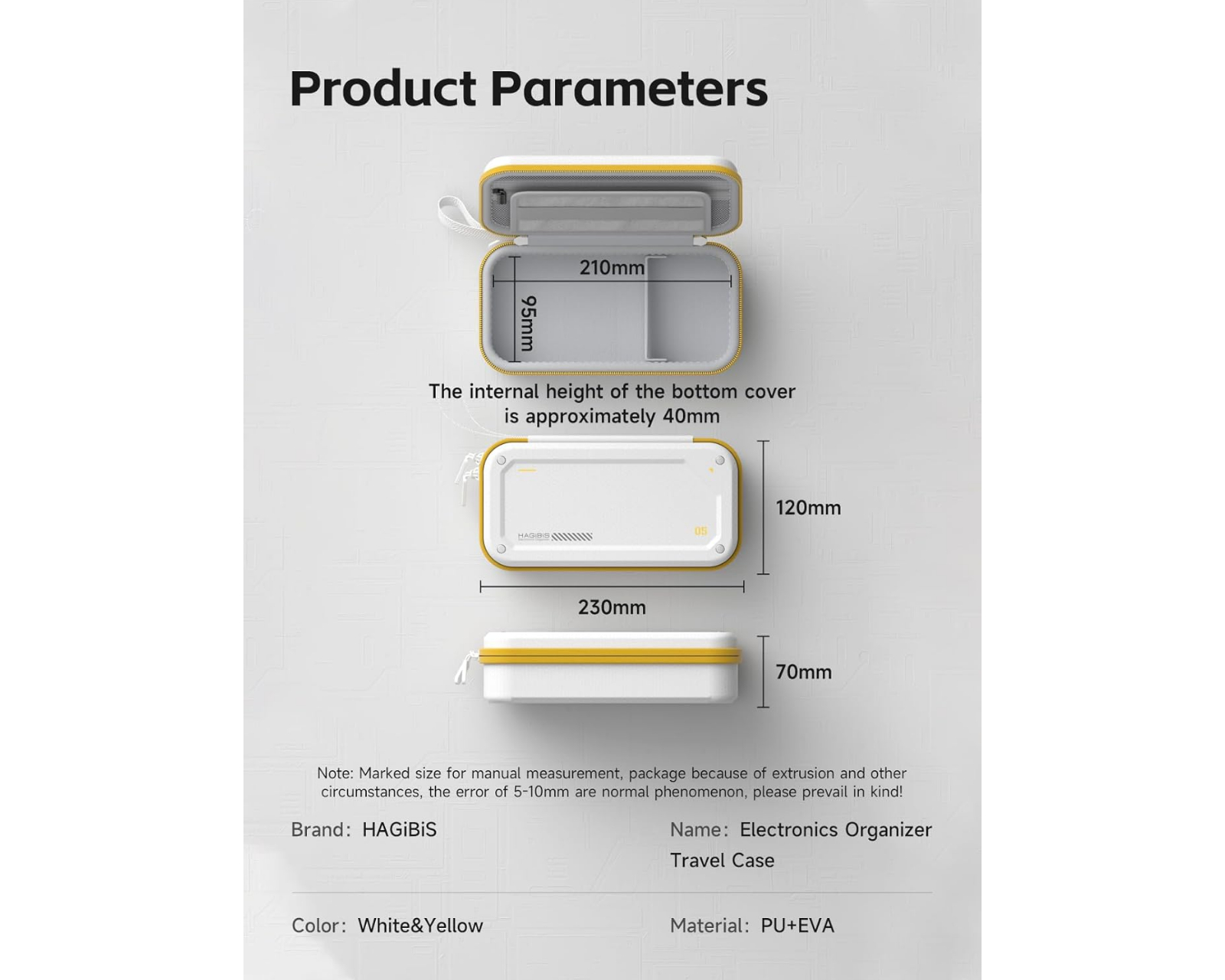 Hagibis Electronic Organizer is a storage bag from Hagibis that combines practical design with security for electronic accessories. The partitioned storage allows you to easily organize hard drives, chargers, data cables, power banks, USB drives, and other digital products. The bag is ideal for travelers who need to keep their items gathered and protected during transport.The bag features a hard EVA shell that protects against drops, scratches, impacts, splashes, and dust. The interior has a soft lining to prevent damage to devices. The sturdy design ensures that accessories are kept separated and prevents them from scratching against each other. The outer part is made of PU leather, which provides superior water resistance compared to traditional materials. Additionally, the bag has a unique high-quality zipper from YKK, which minimizes the risk of scratches on valuable devices and ensures that small items do not fall out.