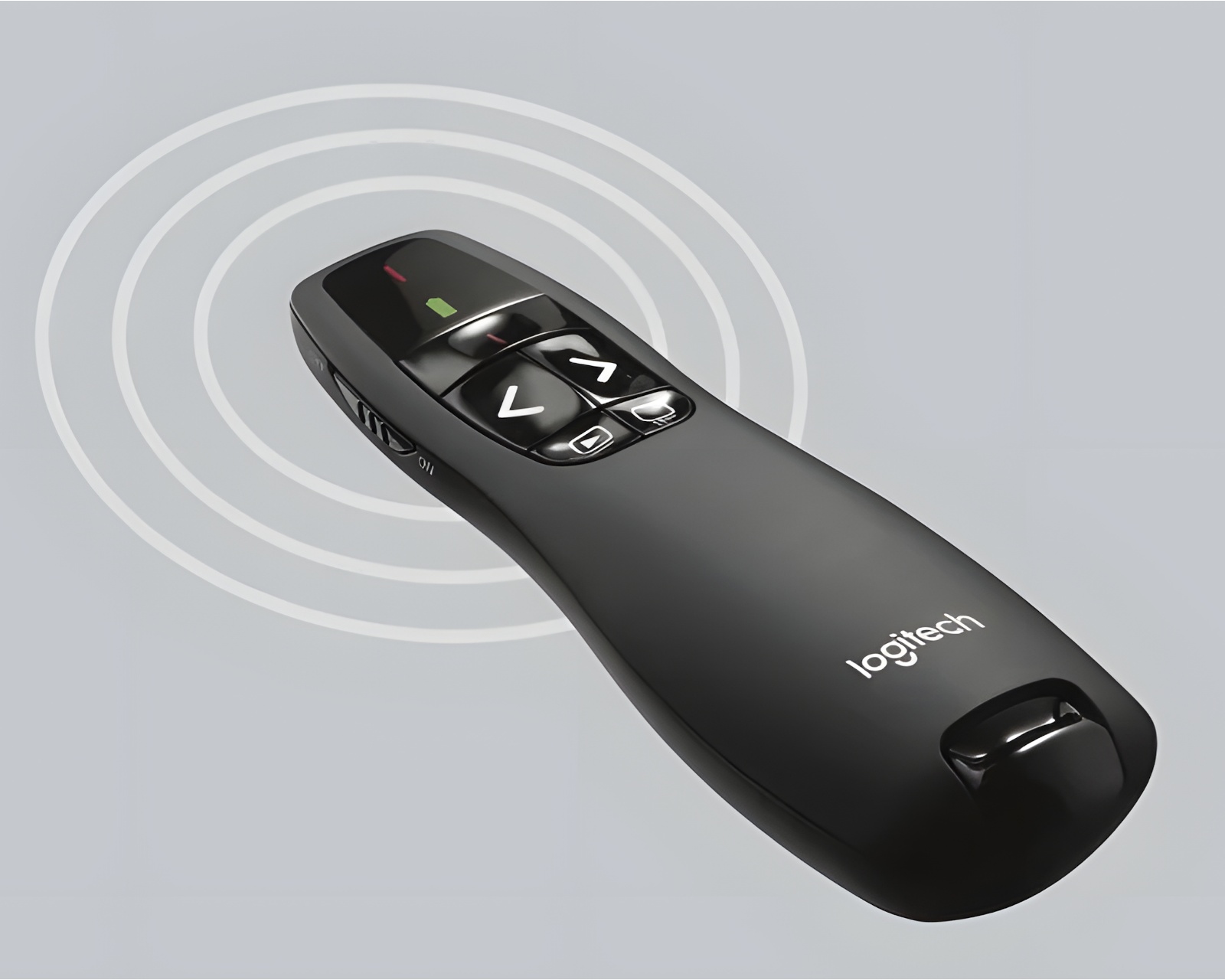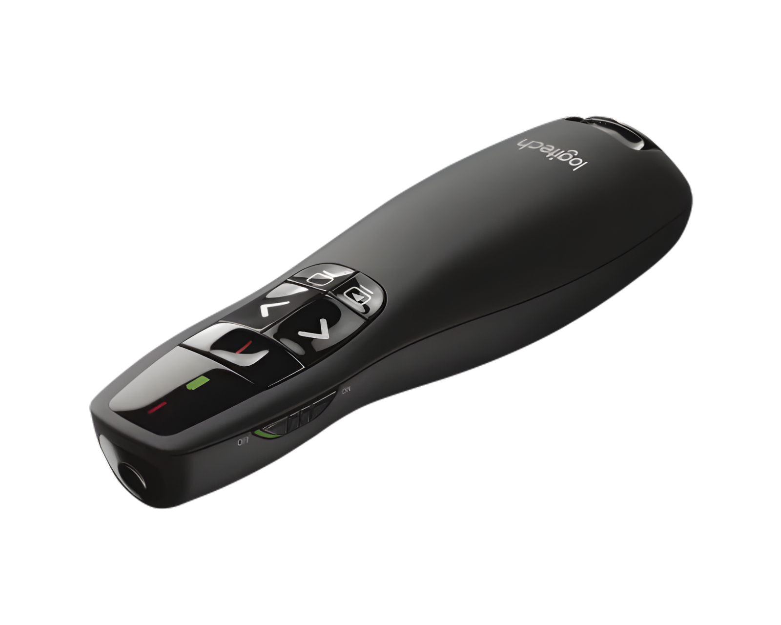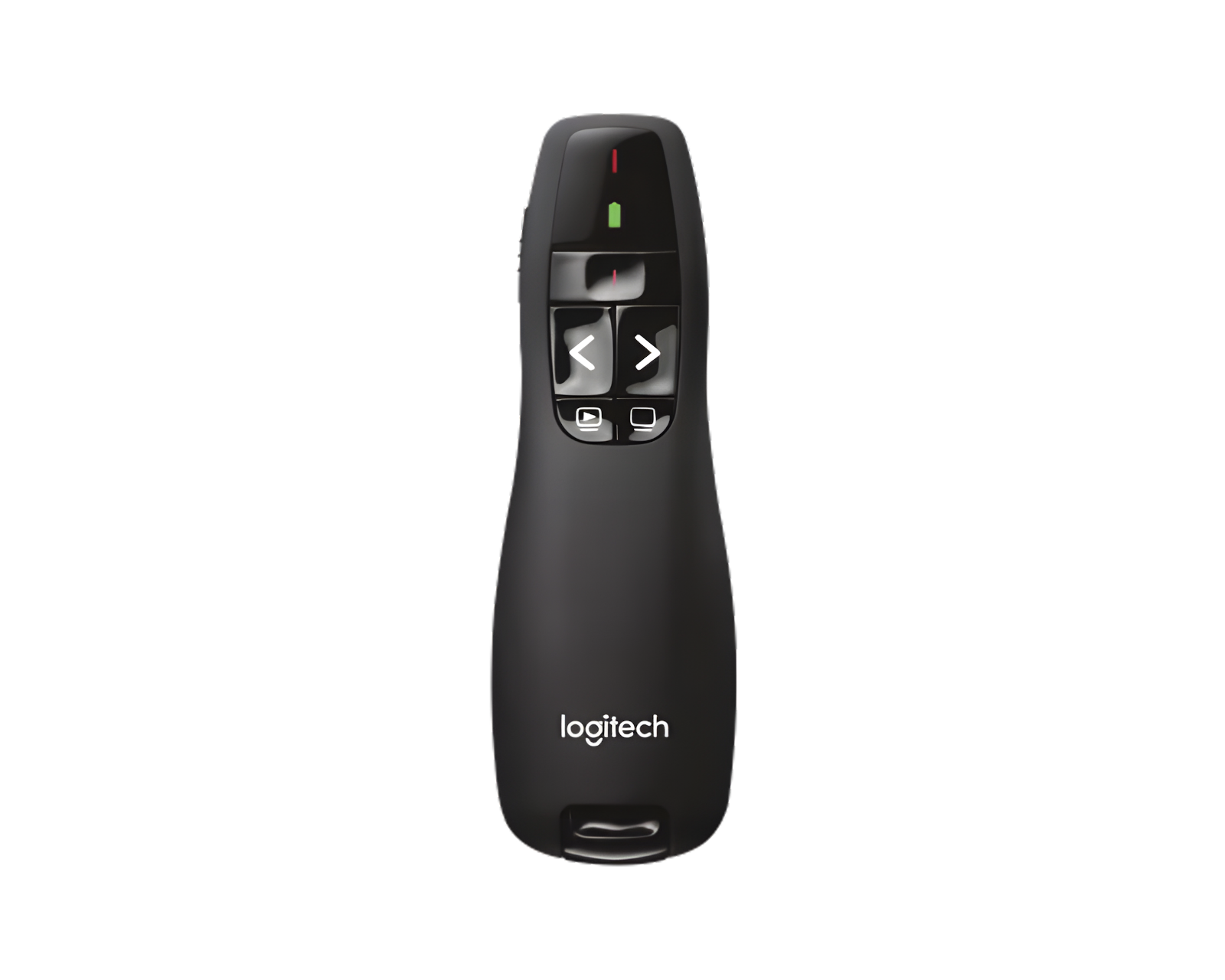 Logitech Presenter R400 is a presentation remote control from Logitech. It features clear controls and a laser pointer that allows easy navigation of presentations, even in poorly lit environments. With a range of 15 meters, it offers the freedom to move around during lectures or presentations without needing to stay close to the computer. It is also easy to use, with a plug-and-play feature that requires no software.The remote control has been designed with a focus on functionality and user-friendliness. It is equipped with a battery indicator that informs the user about battery status, which is handy to avoid sudden interruptions during important presentations. The robust construction ensures durability and long lifespan. Logitech Presenter R400 has ergonomic buttons that are intuitive to use, making it ideal for both professional and academic settings.