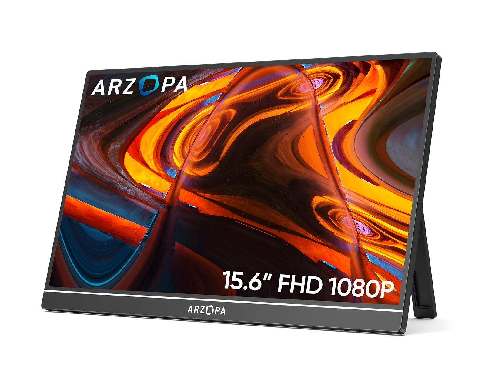 A1 Gamut 15.6" is a portable screen from Arzopa that delivers a sharp Full HD resolution of 1920x1080. The 15.6-inch IPS screen features a matte surface to minimize reflections and offers a refresh rate of 60Hz. With support for HDR technology and a contrast ratio of 1000:1, you get a vibrant visual experience with deep blacks and vivid colors. The screen covers 72% NTSC (100% sRGB) color space and has a wide viewing angle of 178°, making it excellent for graphic work and media. Additionally, it is equipped with Eye Care technology that reduces blue light and minimizes eye strain during prolonged use.The device has an ultra-thin profile and a robust build quality in CNC-anodized aluminum, making it both durable and easy to carry on the go. For maximum flexibility, it easily connects via USB-C or Mini-HDMI to laptops, Macs, gaming consoles (PS5/Xbox/Switch), and select mobile phones. Sound is delivered through dual built-in speakers, and there is also a 3.5mm headphone jack. The included magnetic smart case protects the screen during transport and also functions as an adjustable stand for optimal viewing angle.