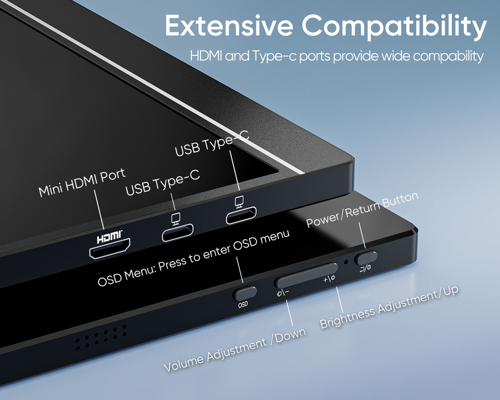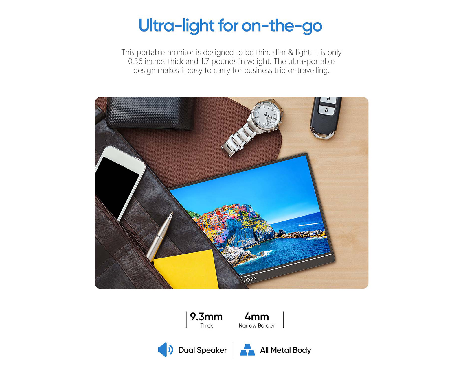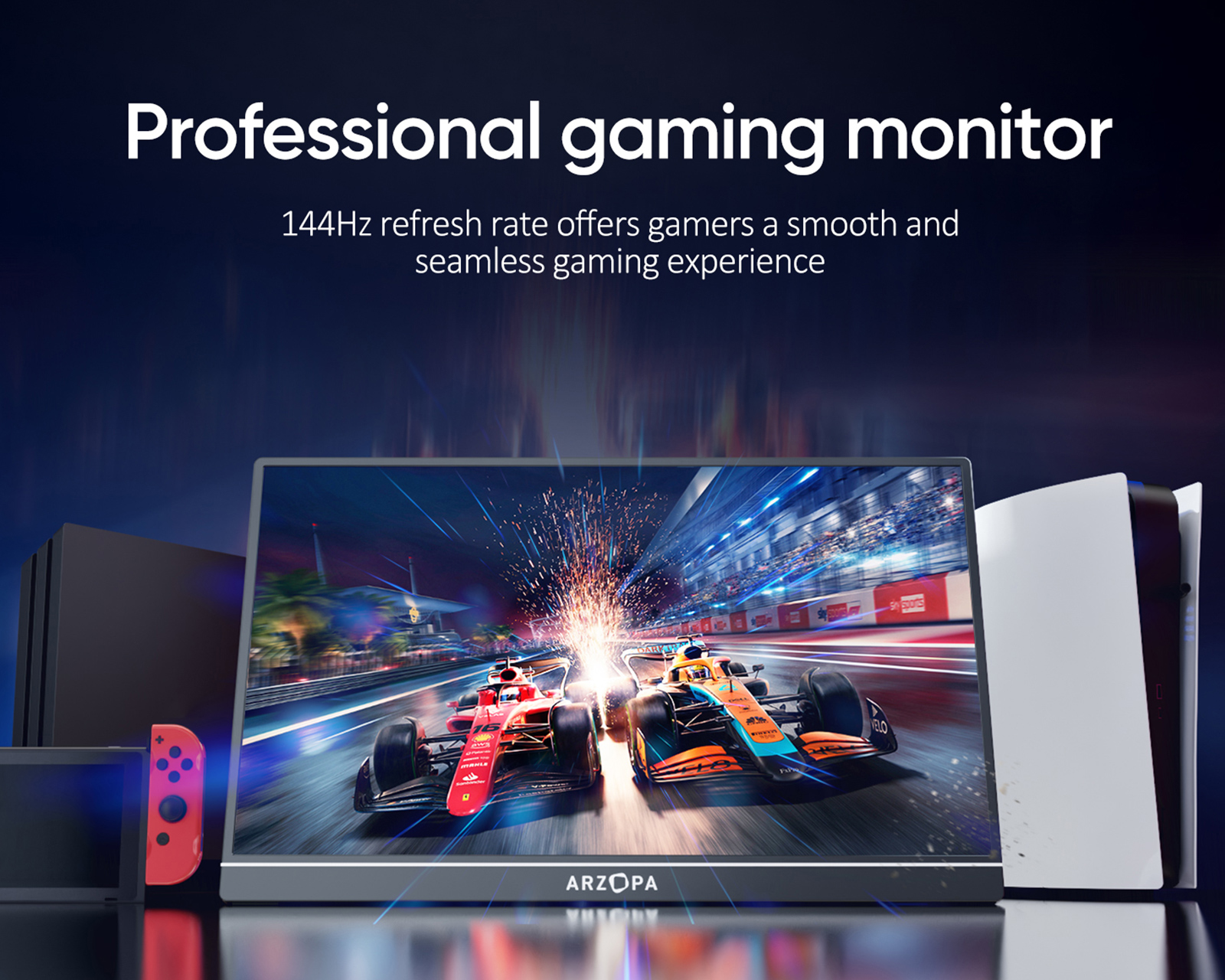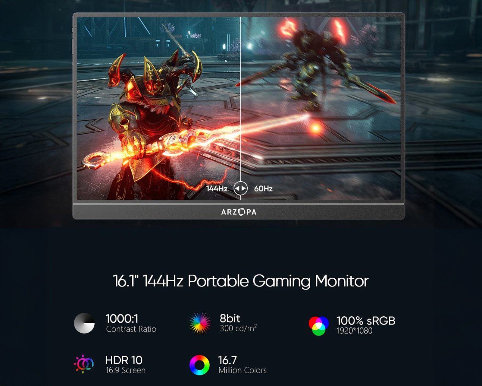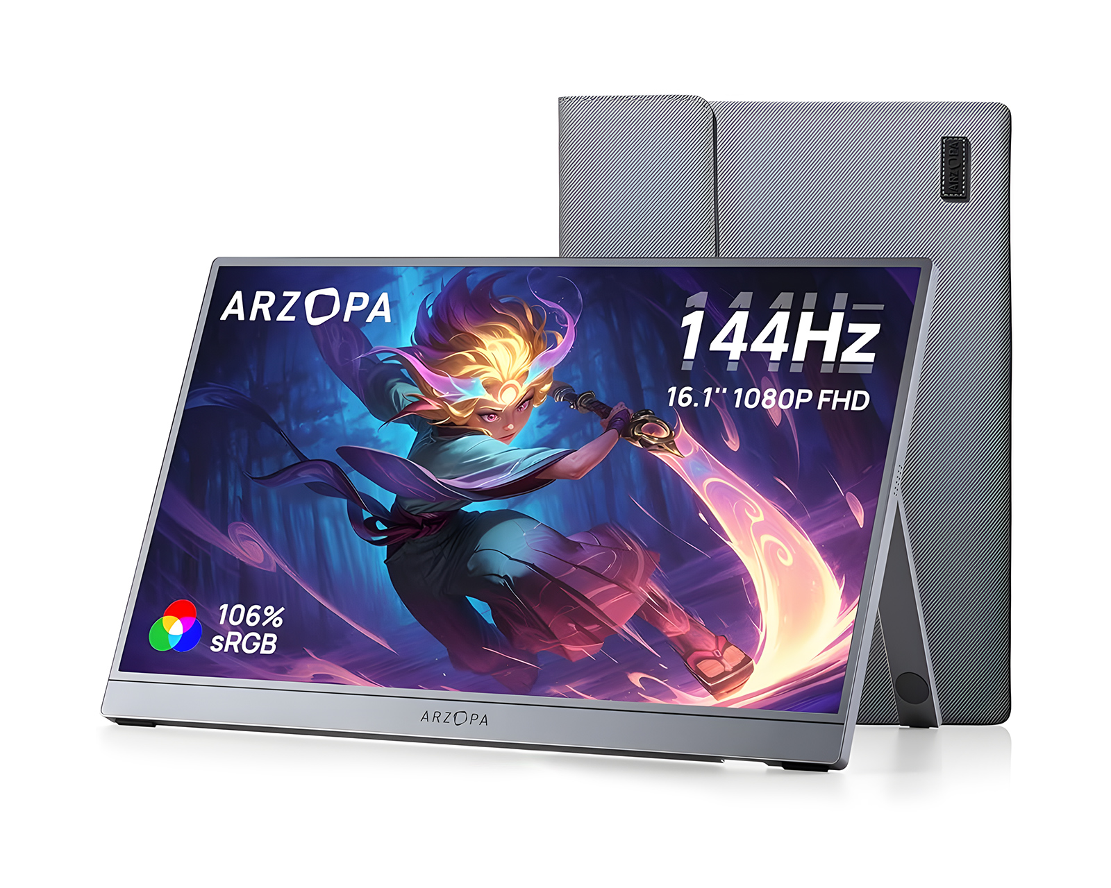 Z1FC 16.1" 144Hz is a portable monitor from Arzopa that offers Full HD resolution of 1920x1080. It features an IPS display with a refresh rate of 144Hz, resulting in fast and smooth image rendering. The product is aimed at gamers and professional users who require extra screen space for work or gaming.The device has a robust aluminum construction that ensures durability and long-lasting use. It is equipped with a USB Type-C port and a Mini-HDMI port, allowing connections to various devices. With a contrast ratio of 1200:1 and a brightness of 300 nits, the screen delivers clear and vibrant images. The screen has 100% sRGB color gamut which ensures high color accuracy. An integrated kickstand makes it easy to adjust the screen to the desired angle. The HDR technology feature provides improved contrast and a more dynamic range in images, further enhancing the user experience.