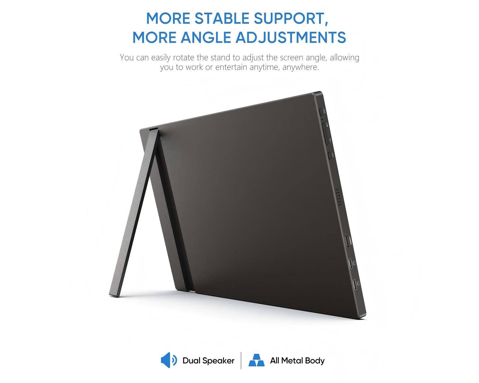 - Built-in kickstand for adjustable angle