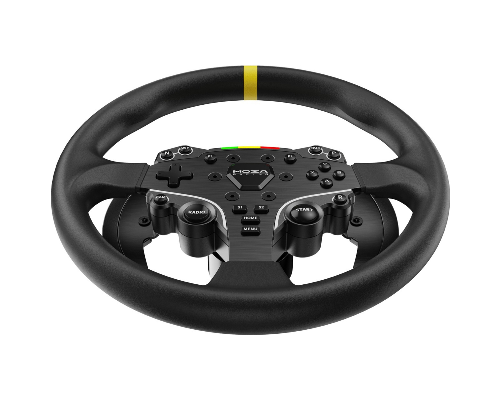 Moza Racing 12-inch round steering wheel from Moza Racing is designed to provide a more realistic driving experience for gamers and enthusiasts. With a diameter of 12 inches (305 mm), the wheel offers an increased size compared to the original ES wheel, approaching the dimensions of a real car. The ergonomic design with seamless grips ensures comfort during longer gaming sessions, making it especially appealing for drifting enthusiasts.The wheel is made of aerospace-grade aluminum alloy, which provides both durability and stiffness for a more responsive gaming experience. The microfiber leather grips are carefully wrapped to maximize grip feel and motion during intense gaming sessions. The total weight is 850 g, contributing to a low moment of inertia and an improved ability to recreate road details. For added comfort with the larger wheel, shifting paddle extenders are also included to reduce the distance between the wheel and the hands.