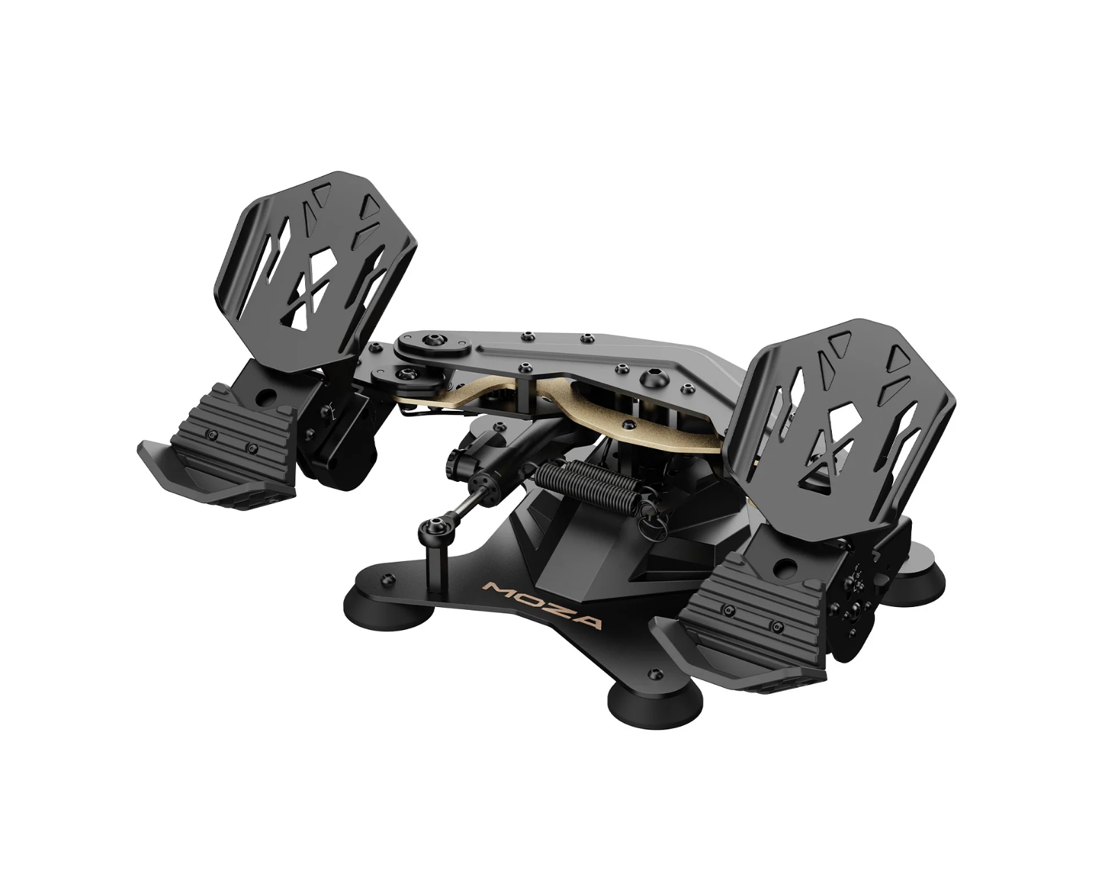 MRP Rudder Pedals from Moza Racing offer advanced performance and are designed to provide a realistic flying experience, constructed with high-quality materials to ensure long-lasting durability. With a steering angle of up to ±30° and a pedal system that can be adjusted with a tilt of ±25°, these pedals are ideal for various flight scenarios and user preferences.MRP Rudder Pedals feature a robust metal frame that provides stability and durability even under intense use. The swing-arm design allows for smooth and responsive movement, giving the user precise control over the rudder inputs. By using high-precision Hall sensors, a smooth and accurate braking control is ensured, which is crucial during taxiing, takeoff, and landing. The pedals also have customizable centering forces through interchangeable springs, allowing for personal adjustment based on flying style. For added realism, there is an optional adjustable damper.