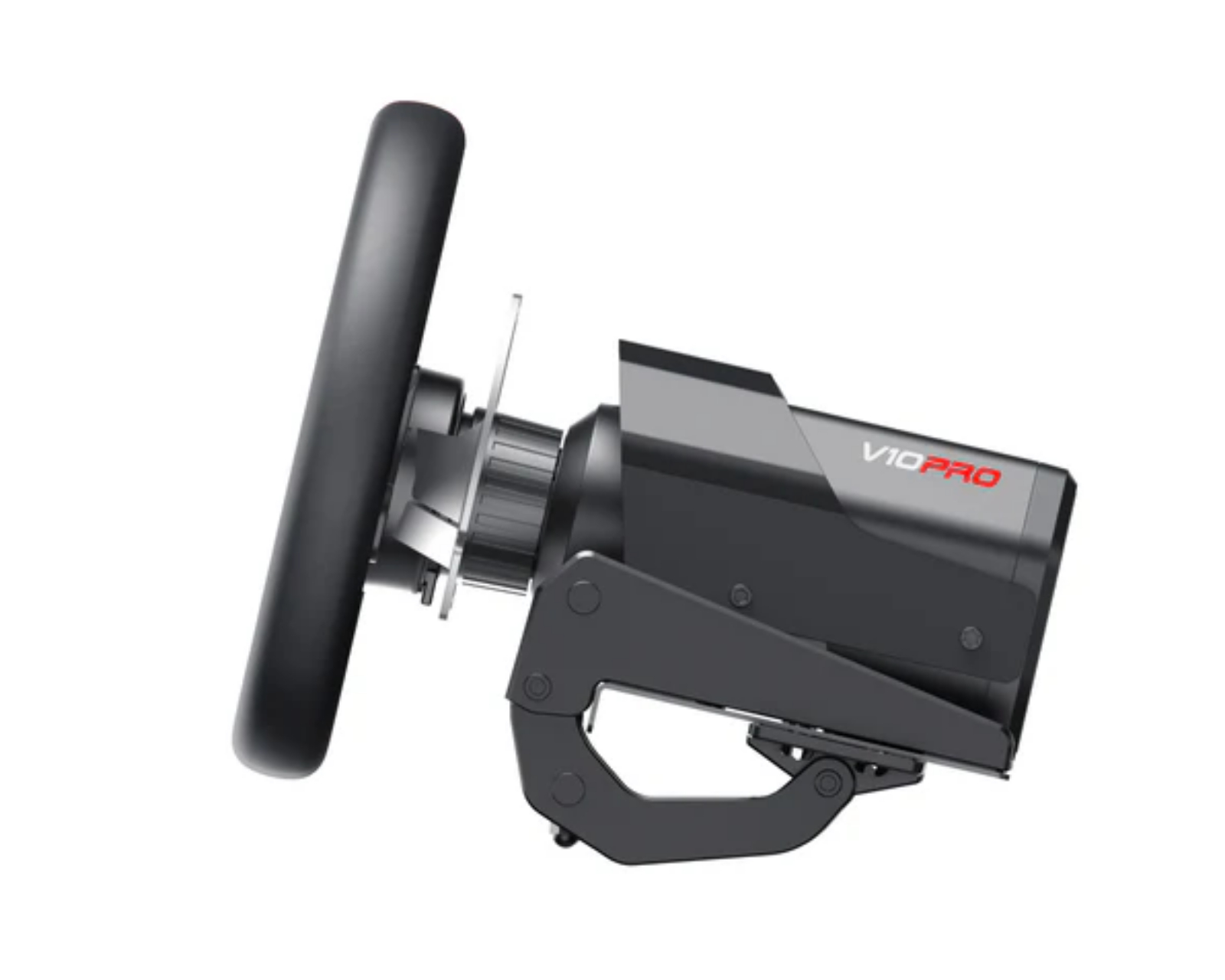 V10 Ultra is a steering wheel and pedals set from PXN that offers Direct Drive technology, perfect for beginners in sim racing. The set is designed to be compatible with PC, Xbox, and PS4 and provides an accurate and responsive user experience. It features a direct servo motor and a Hall-effect pedal board with a maximum torque of 3.2 Nm, making it a competitive option for enthusiastic gamers.The steering wheel has a modular design with a detachable 270 mm steering wheel, facilitating customization and use. The pedal sensitivity can be adjusted to suit different driving styles, and the entire unit mounts easily with the included clamps. V10 Ultra offers software configuration to customize strength and sensitivity according to user preferences.