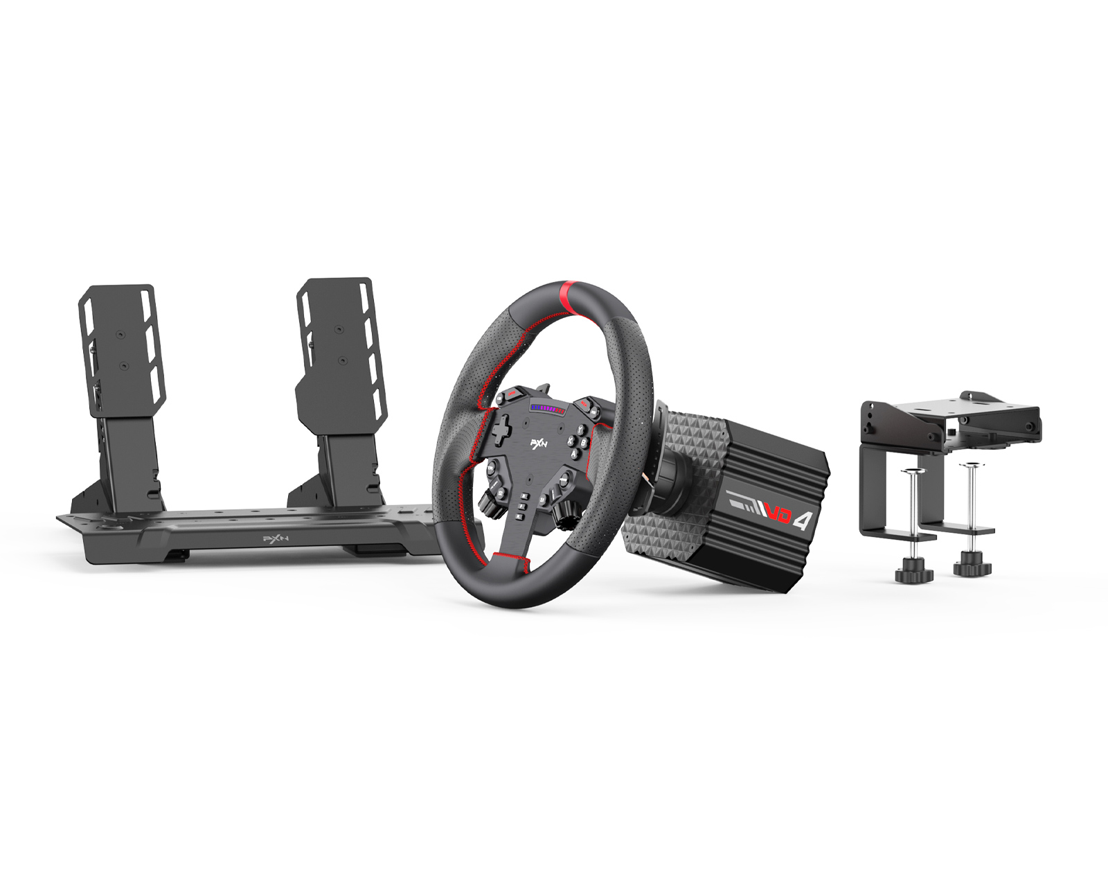 VD4 Bundle F is a racing simulator from PXN that includes a direct drive base, a WAS racing wheel, and PD HM brake & throttle pedals. It is designed for PC and is compatible with simulators such as iRacing, Assetto Corsa, and the F1 series. The product comes with a 12-month warranty and professional customer support. It is only intended for Windows 7–11.The PXN VD4 direct drive base uses a low-inertia servo motor with 20 poles, delivering 4 Nm of continuous torque and 5 Nm of peak torque. The system features a 24-bit magnetic encoder and a multiprocessor that, along with the Sense+ algorithm, ensures precise force feedback. The aluminum chassis and smart temperature control system maintain consistent performance during longer gaming sessions.
