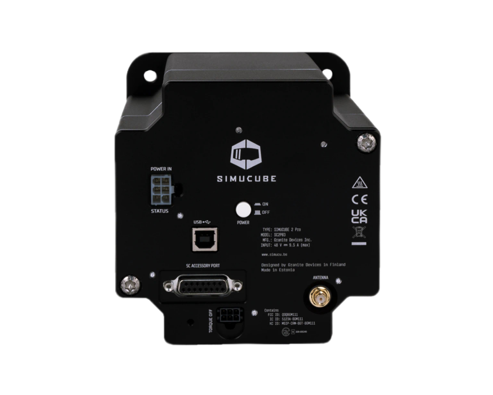 Simucube 2 Pro is a direct-drive racing wheelbase from Simucube, offering detailed and powerful force feedback with a maximum torque of 25 Nm. It is designed for both serious gamers and professional users, enabling automatic profile switching between different cars and simulators, making it versatile and easy to use. The wheelbase is made of industrial quality and is built for long-lasting durability.This unit uses a direct-driven motor with high responsiveness, optimized for ultra-low torque ripple, providing a smooth and precise return. The wheelbase weighs 11.1 kg and has dimensions of 130 x 130 x 270 mm. Mounting is done with M8 threaded holes with a pattern of 145 mm in diameter. A torque slew-rate of up to 8.0 Nm/ms and advanced features such as natural damping, inertia and friction filters provide excellent control and precision. The Simucube Tuner software allows for extensive customizations.