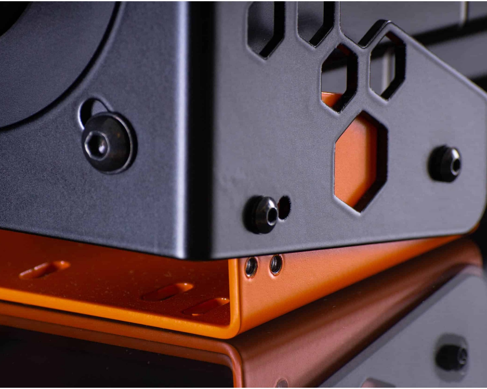 The mount for Simucube 2/3 is a durable solution for front-mounted direct drive wheel bases from Simucube. With a robust construction made of laser-cut quality steel, this mount offers stability and long-lasting use. The adjustable height and tilt allow for customization for different setups and wheel mounts. The mount includes complete mounting materials for quick and easy installation.The material is of high quality and ensures stable support for the wheel base. The mount is compatible with many common wheel mounts and drill patterns, providing flexibility and the possibility to fine-tune the installation. The included mounting components consist of M5, M6, and M8 screws, washers, and nyloc nuts, which further facilitate the installation. Mounting measurements along with a drilling guide and manuals are available for download, making the process transparent and easy to follow.