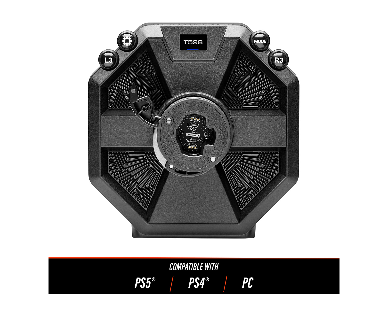 T598P Servo Base is a direct-drive base from Thrustmaster designed for PC as well as consoles PS4 and PS5. It offers precise wheel movement without gearing through its true Axial Flux motor, enabling high-quality Force Feedback. With a constant torque capacity of 5 Nm that can be doubled in stressful situations, this unit is specifically designed for sim racing enthusiasts.The unit is constructed with carefully selected materials to ensure durability and performance. T598P's technology, including HARMONY, generates high-frequency torque to reproduce subtle details from the game, such as rumble strips and tire slip. It boasts an ultra-low latency of 5 ms for immediate response. Settings can be adjusted and profiles saved directly through the Race Dash screen, which displays over 10 racing information during gameplay.