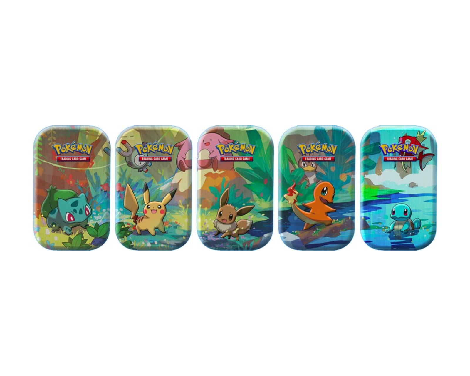 The Kanto Friends Mini Tin is a collectible accessory from Pokémon aimed at Pokémon trading card game enthusiasts and collectors. This mini tin offers a compact solution for storing Pokémon cards, while also paying tribute to the iconic Pokémon from the Kanto region. Inside are two Pokémon TCG booster packs, each containing 10 cards. Also included is a metallic Pokémon coin and an art card with information about the Pokémon that adorns the lid. The cover of the tin is chosen randomly.Summary