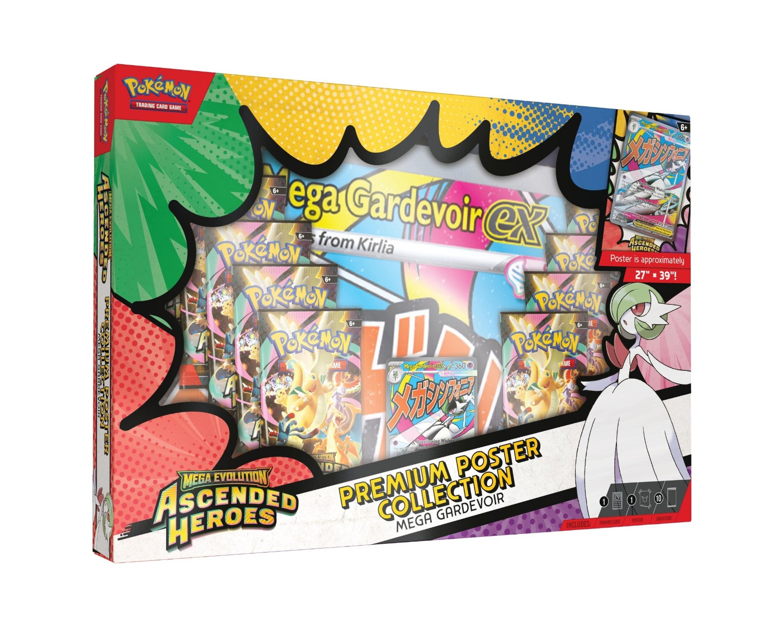 ME2.5 Ascended Heroes - Premium Poster Collection from Pokémon is an exclusive collection that focuses on the legendary Mega Lucario ex and Mega Gardevoir ex, known for their powerful attacks and high HP. The collection includes a rare Full-art foil promo card and is designed for both collectors and players looking to dive into the Mega format.Max 1 unit per customer.