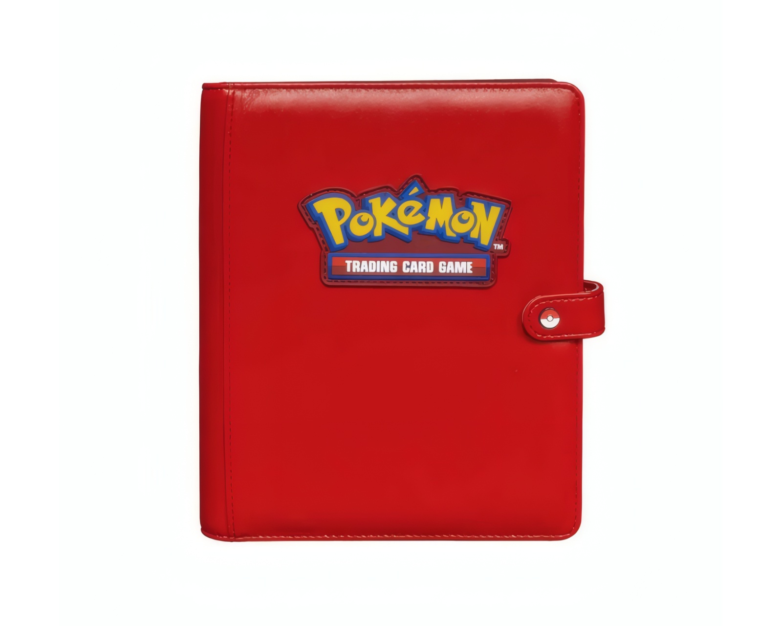 Premium Snap Binder is a collector's card binder from Pokémon, designed to effectively organize and protect collections of trading cards. It features a reddish, padded leather-like material with a rubber-based Pokémon emblem and is held closed by an enameled Poké Ball snap. The binder's design allows for storage of up to 160 cards in Deck Protector sleeves, through side-loading pockets that optimize card visibility and security.The product is made from acid-resistant and non-PVC materials to ensure long-lasting protection and preservation of the card quality. Inside the binder, there are twenty pages with side-loading, providing the user with a convenient way to organize their cards. The black backing on the pages minimizes friction and creates a classic frame for the cards, which both protects them and makes them more visually appealing.