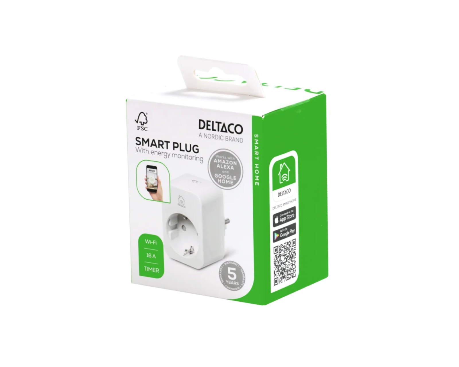 Smart Plug with Energy Measurement is a smart device from Deltaco Smart Home that allows you to easily monitor and control energy consumption in the home. This product is designed to be used with the DELTACO Smart Home app, making installation quick and easy without the need for additional equipment. The user can track energy consumption in real-time and identify which appliances draw the most energy. It becomes easier to make decisions to reduce energy consumption and save money on the electricity bill.Smart Plug with Energy Measurement offers a range of features, including timers and scheduling of power supply. Through the app, users can set timers to automatically turn off the device at specific times or schedule when the power should be on. The automated actions feature allows you to configure the device to turn off at sunset or group multiple devices to perform the same action simultaneously. The accompanying app is free and compatible with both Android and iOS, providing complete control over the device.