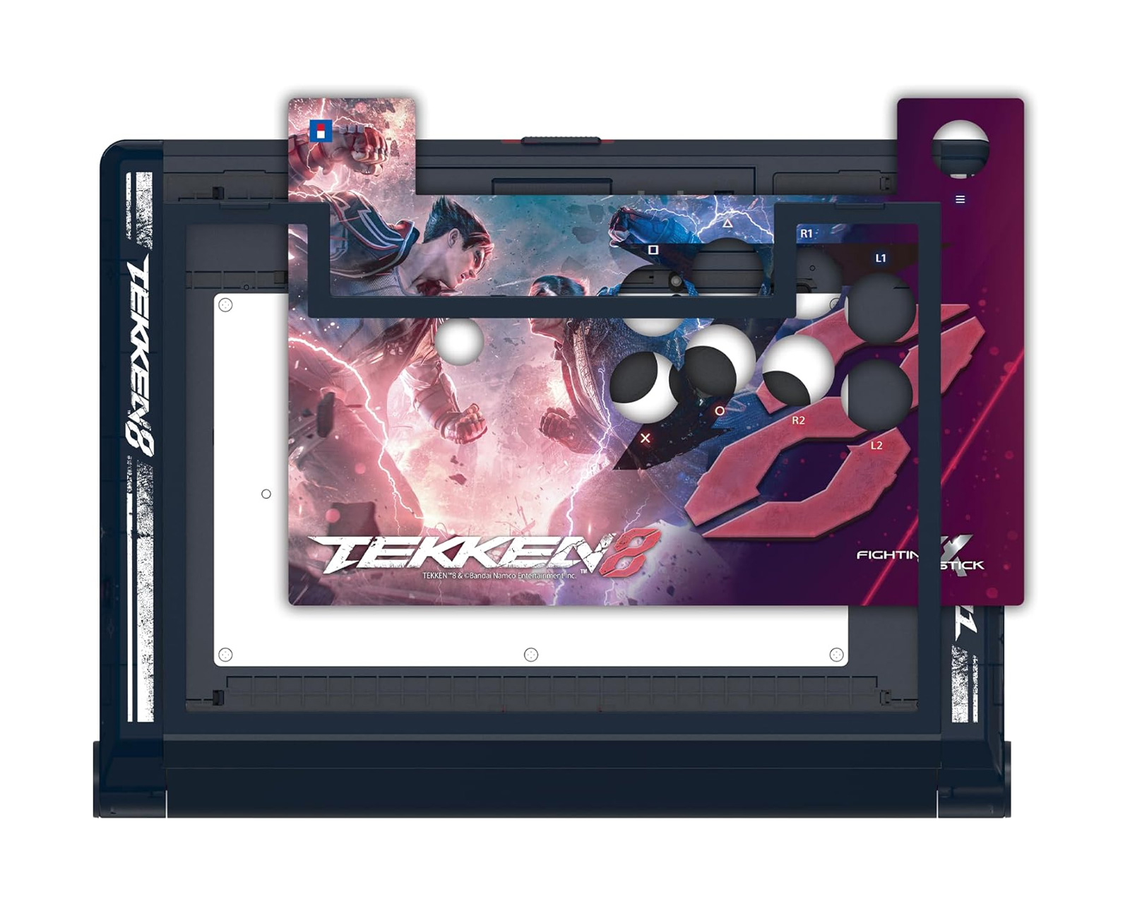 HORI Fighting Stick α (Tekken 8 Edition) for PlayStation 5. This premium joystick is perfect for serious fighting game fans who want to take their skills to the next level. The Fighting Stick Alpha features HORI's legendary HAYABUSA joystick and HAYABUSA high-speed buttons for outstanding responsiveness and performance, along with a fully functional touchpad and tournament lock for eSports gaming. In addition, with the convenient built-in audio and microphone controls, you can focus all your attention on the match. The Fighting Stick Alpha also comes with a replaceable artwork of Street Fighter 6 on the top panel.Whether you are a beginner or a pro in fighting games, you won't have to replace your arcade stick for a long time with the Fighting Stick Alpha from Hori.