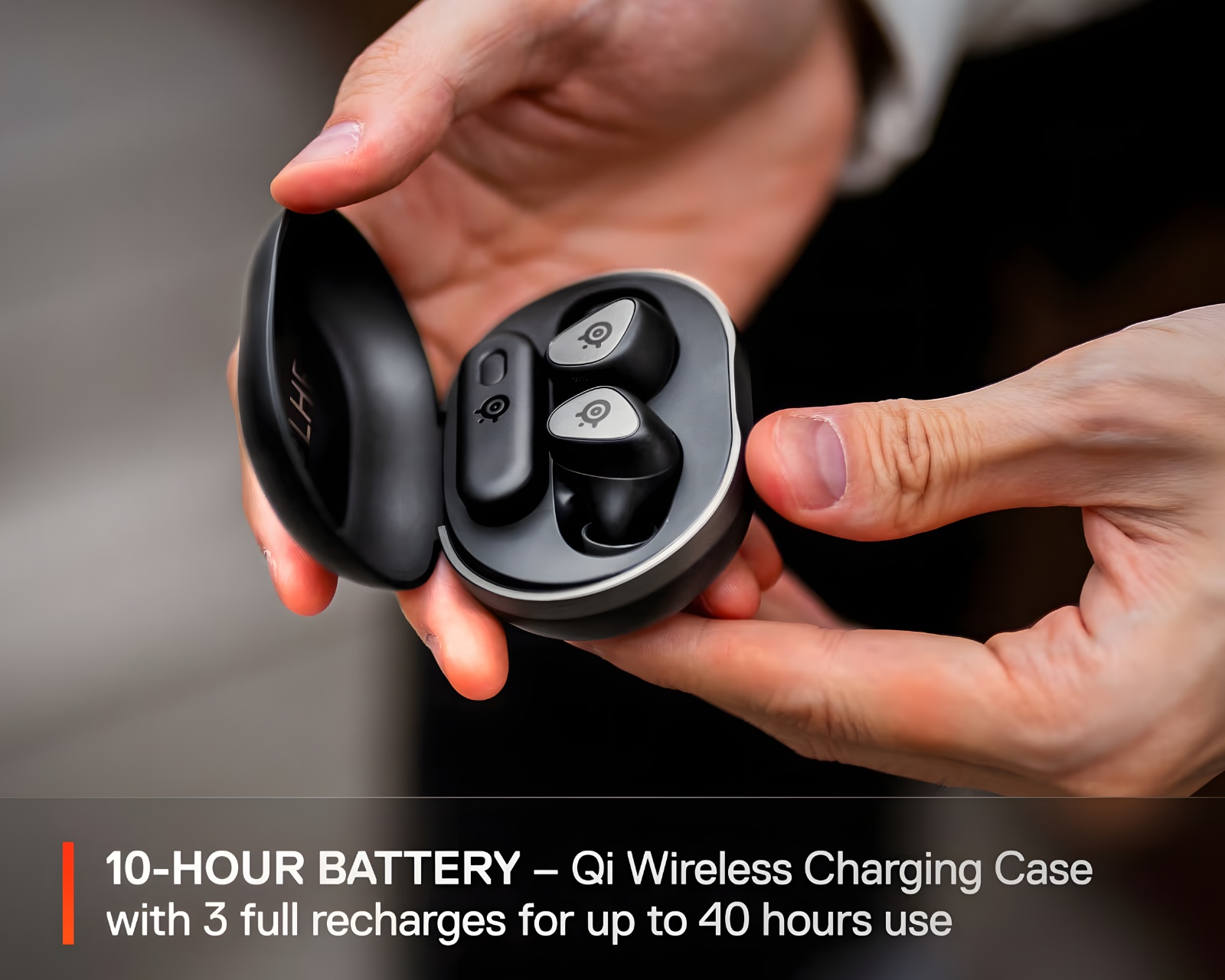 GameBuds are carefully designed to provide comfort no matter how long you play, so you can enjoy your gaming sessions without discomfort. Their fit is secure and stable, allowing you to focus fully on the game without worrying about the headphones slipping out.