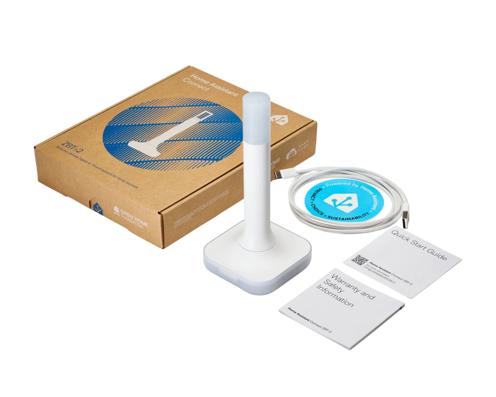 Home Assistant Connect ZBT-2 is a USB adapter from Nabu Casa that enables direct connection of Zigbee, Thread, and Matter devices without the need for extra hubs. With an optimized antenna, a stable and fast connection to your smart home devices is ensured. The adapter's updated Zigbee and Thread chip (MG24) offers up to four times higher speed compared to previous generations, providing a smoother user experience.The adapter's design is tailored for enthusiasts with an open platform, making it easy to open and modify. Its broad compatibility means you can connect both established Zigbee products and the latest Matter-compatible devices. With support for protocols like ZHA, Zigbee2MQTT, and OpenThread Border Router, ZBT-2 is a versatile solution for your smart home. The device is made of polycarbonate plastic and is intended for indoor use only, with an operating temperature of 0–65 °C.