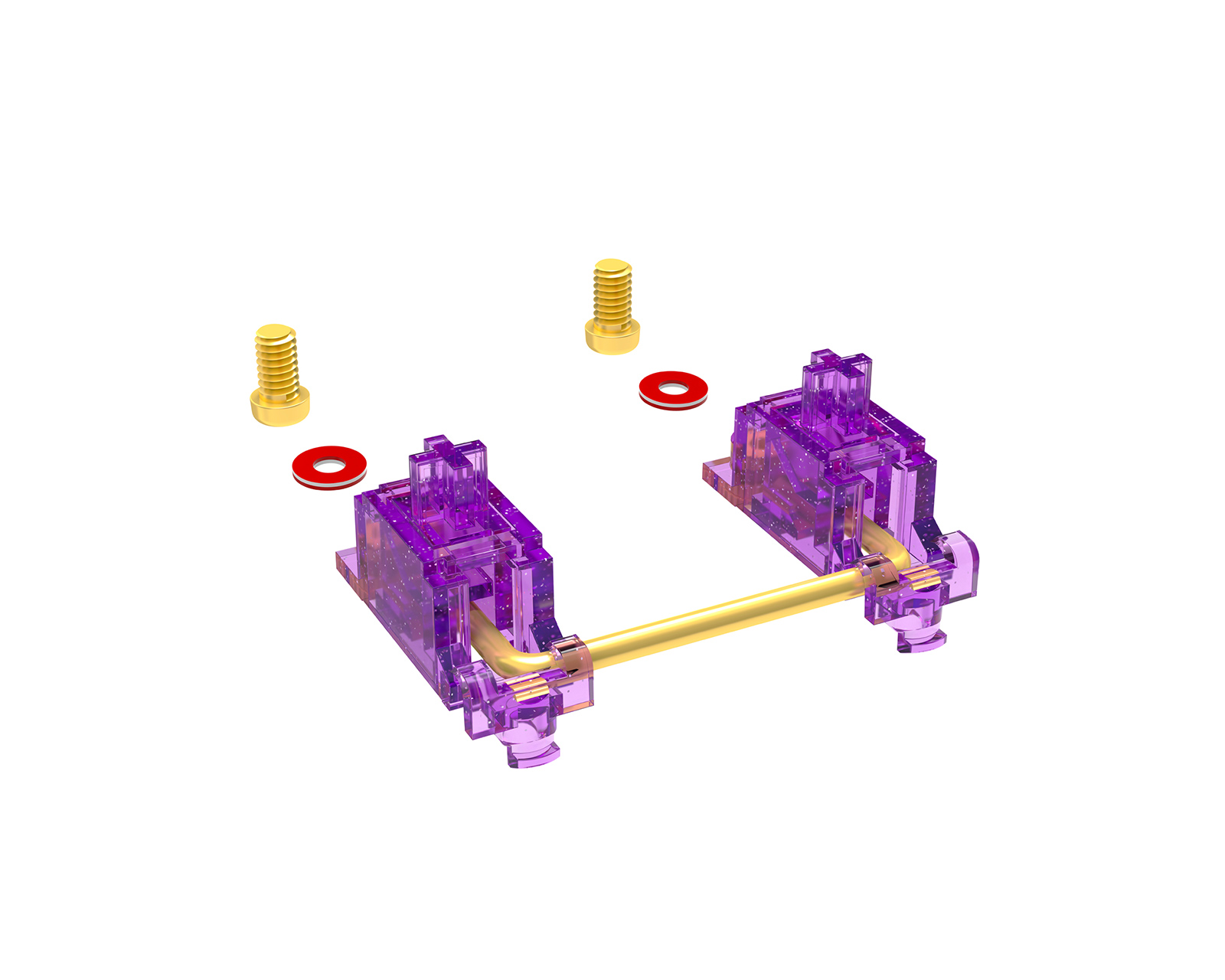 Improve the stability of your keyboard with Durock Stabilizers V3. These gold-plated steel and nylon stabilizers are considered the "Rolls Royce" of the category. The updated design with elastic support base ensures that the wire is held in place without noise or rattle. Avoid the hassle of modifications and balancing wires - these stabilizers only need a little lubrication on the slider and wires to ensure an optimal gaming or typing experience.A 60% keyboard normally requires 4x 2u and 1x 6.25u or 1x 7u stabilizers. A full-size keyboard usually requires 7x 2u and 1x 6.25u stabilizers. These are screwed into the PCB which ensures that the stabilizers stay in place as best as possible. Comes with the corresponding screws and washers.