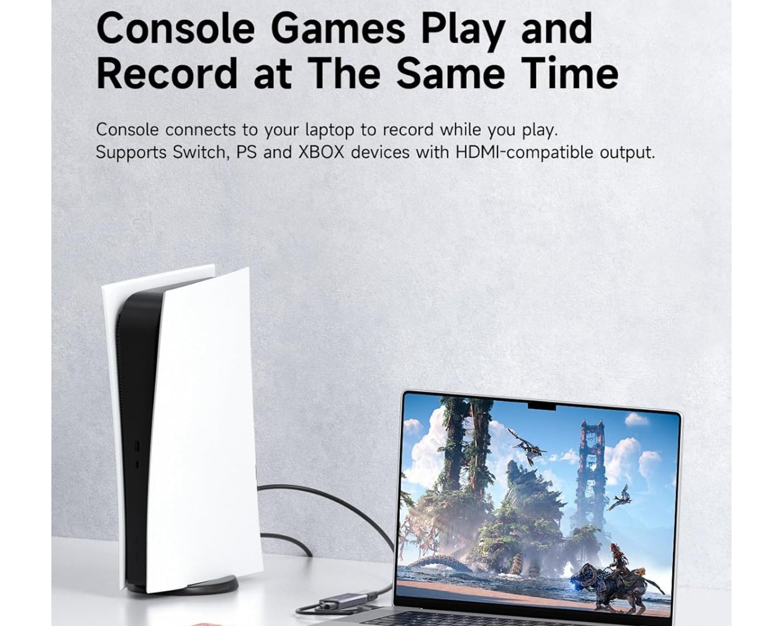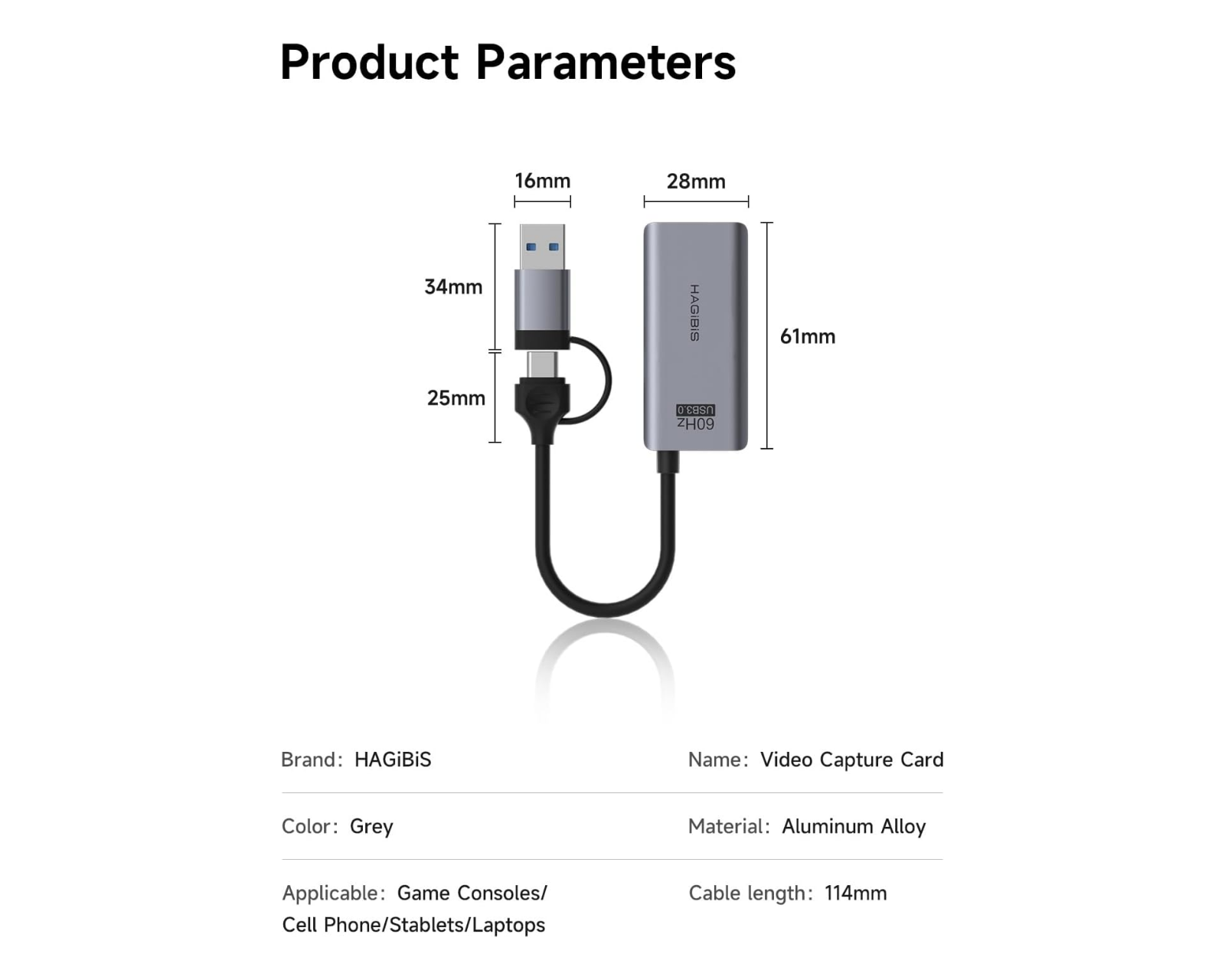 Hagibis video capture card is a video capture device from Hagibis that allows for the recording of HD video and audio. It has a maximum resolution of 1080p at 60 frames per second, making it suitable for gamers and users looking to stream or record quality content. It features both HDMI and USB Type-C connections, making it compatible with a wide range of devices such as laptops, tablets, mobile phones, Xbox, and PS4/5.The device is designed with an innovative dual-connection design that eliminates issues with interface incompatibility. It is plug & play, meaning it can be used without the need for driver installations or external power supply. Its compact format makes it easy to transport and is excellent for livestreaming both indoors and outdoors. The video capture card is constructed to deliver very good video and audio quality during recording.