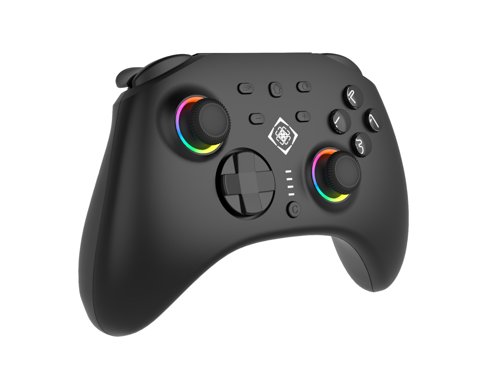 A game controller from Deltaco Gaming that offers a dedicated C-button for quick access to chat functions and an ergonomic grip. The controller is designed for compatibility with Switch 2, Switch, Switch OLED as well as Android and Windows PC, providing a wide range of uses. Equipped with high-precision 3D joysticks and Hall Effect sensors for accurate control and movement without stick drift.The controller is built to optimize the gaming experience with Bluetooth 5.3 connectivity and a range of up to 10 meters, ensuring stable wireless performance. The adjustable RGB lighting allows for visual customization, and with two programmable macro buttons, users can streamline their most frequently used commands. Dual vibration motors provide tactile feedback during gameplay, and the turbo button allows for rapid input when needed. 6-axis motion sensors offer additional precision in gaming environments and make actions more responsive.