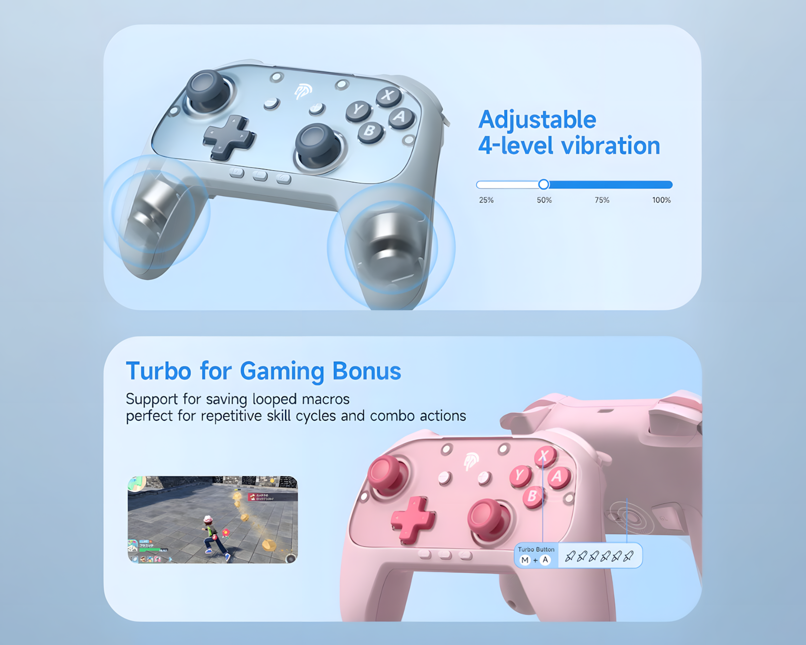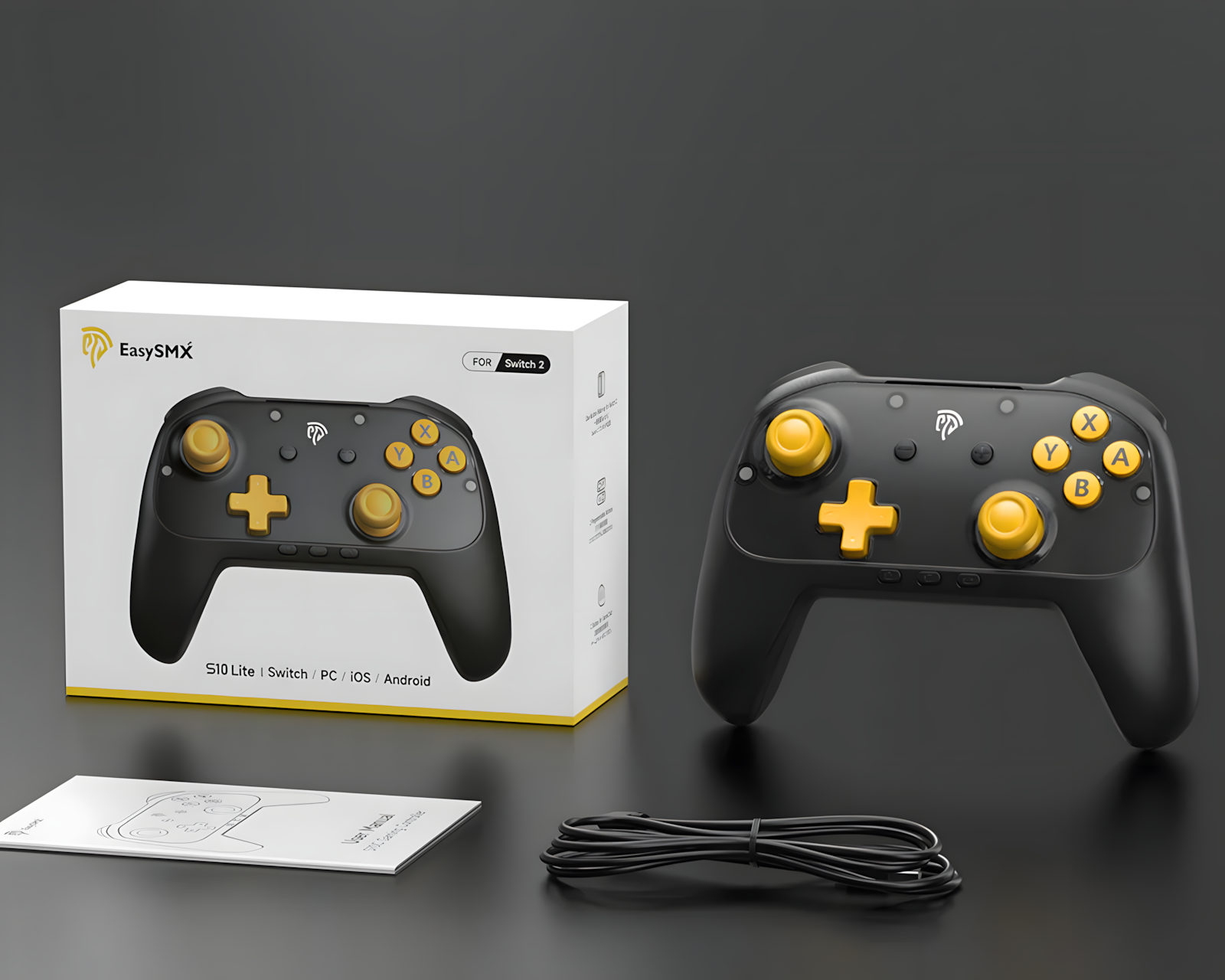 S10 Lite is a game controller from Nintendo that is designed to provide a seamless gaming experience with Switch 2. It is equipped with Hall Effect sensors that eliminate stick drift and features an upgraded Ultra-Glide™ structure for smoother movements. With a robust Bluetooth connection and a battery capacity of 1000 mAh, players can enjoy long gaming sessions.The product is characterized by a well-thought-out build quality, where the anti-slip material and the ergonomically shaped curve make it comfortable to hold. The controller has an advanced 9-axis gyroscope that corrects spatial drift in real-time, providing high precision during movements. Connectivity methods include both wireless Bluetooth and wired connection via Type C. This makes it compatible with multiple platforms, including Windows and mobile operating systems.