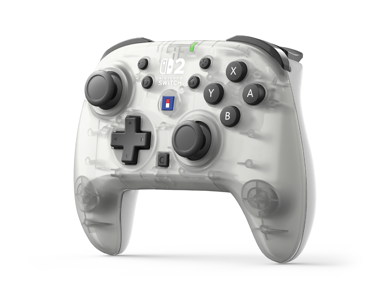 HoriPad Turbo is a wireless controller from Hori, designed for Nintendo Switch 2. It features an ergonomic and transparent design that combines comfort and style, making it ideal for long gaming sessions. The controller is equipped with a rechargeable battery that provides up to 10 hours of gameplay on a single charge.The build quality of HoriPad Turbo is high, with durable TMR sticks for precision control and a built-in gyroscope that enables advanced gameplay control through motion. The wireless connection system has a range of up to 10 meters, giving players the freedom to move without limitations. The controller also includes programmable rear buttons and a button lock feature to prevent unintentional inputs during intense gaming moments. Additionally, it is officially licensed by Nintendo, ensuring compatibility and quality.