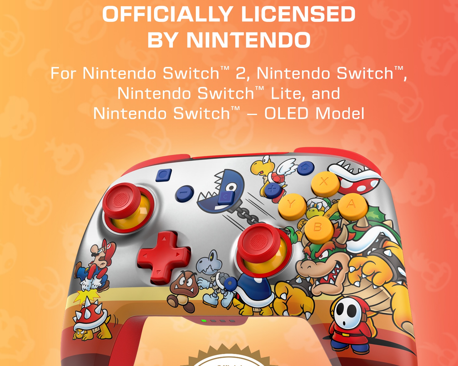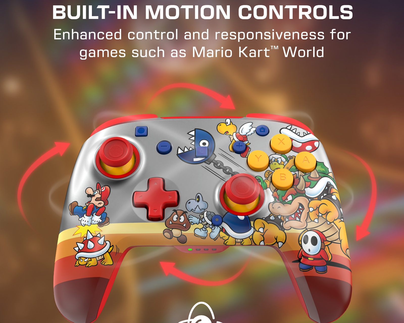 Rematch™ Koopa Troop is a wireless game controller from Turtle Beach, designed for Nintendo Switch™ 2, also compatible with Nintendo Switch™, Switch™ Lite, and the OLED model. The controller boasts an impressive wireless range of up to 30 feet and offers RGB lighting with four dynamic modes.The controller is built with premium TMR (Tunneling Magnetoresistance) thumbsticks that enhance responsiveness and precision. The integrated motion controls allow players to take advantage of a more interactive gaming experience. With a built-in rechargeable battery, you get up to 40 hours of playtime without RGB lights or 12 hours with the lights on, providing long-lasting use.