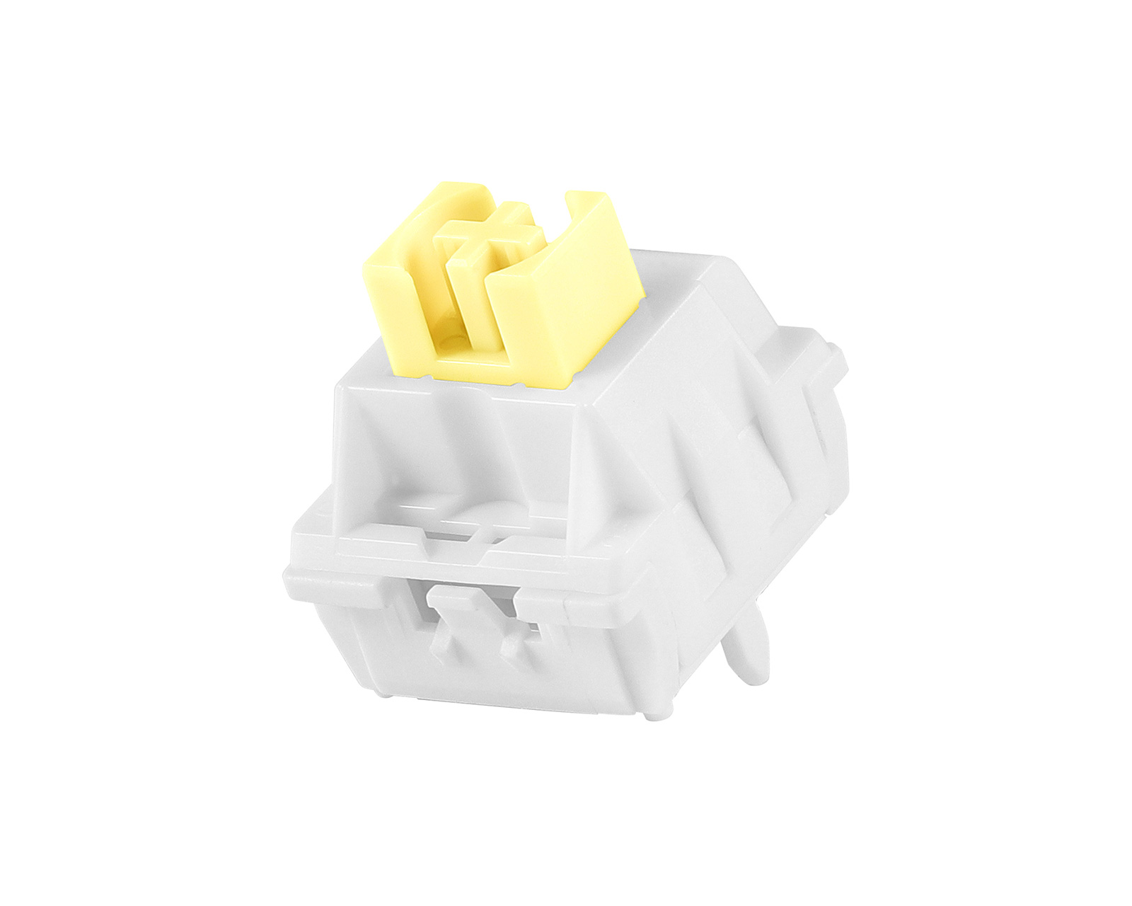 Jwick Ginger Milk Switches are linear switches with a top housing in polycarbonate, a bottom housing in nylon and a POM box stem. It has a new top housing shape for a two pin lock as well as a new boxed stem shape. The top housing has a slightly protruding support for the shaft to reduce shaft swings throughout the keystroke.- Linear