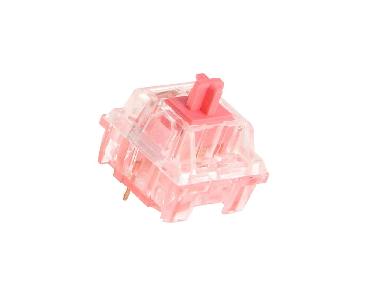 KTT Strawberry's are part of KTT's premium line of switches. They feature polycarbonate in both the top and bottom housing, and a gold plated spring. Additionally, they are one of the few KTT switches to utilize a MX style latch. These switches perform extremely well stock, and only get better with lube, and films.Article number:
